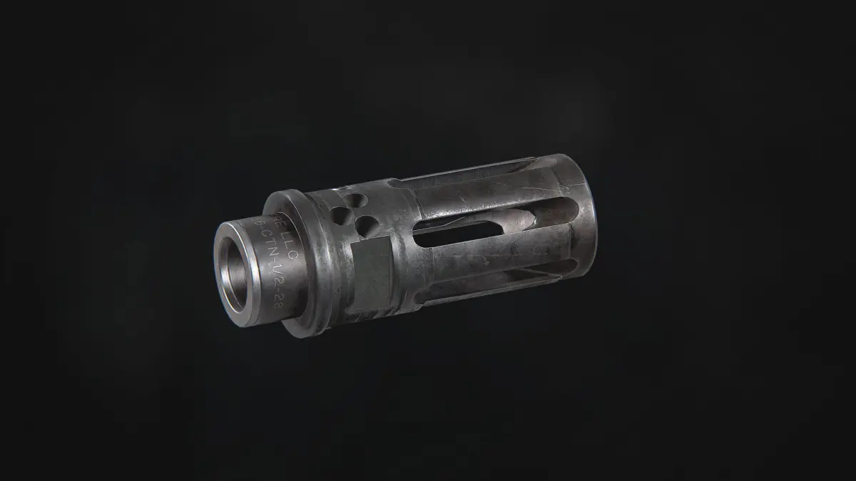 Game ready WARCOMP-556-CTN-1/2-28 Closed-Tine Flash Hider 3D model. Accurately modeled and textured, all the marks and even threading should match the real thing pretty closely. Made in line with other surefire muzzle devices available for purchase on their own or in a bundle, so be sure to check them out!