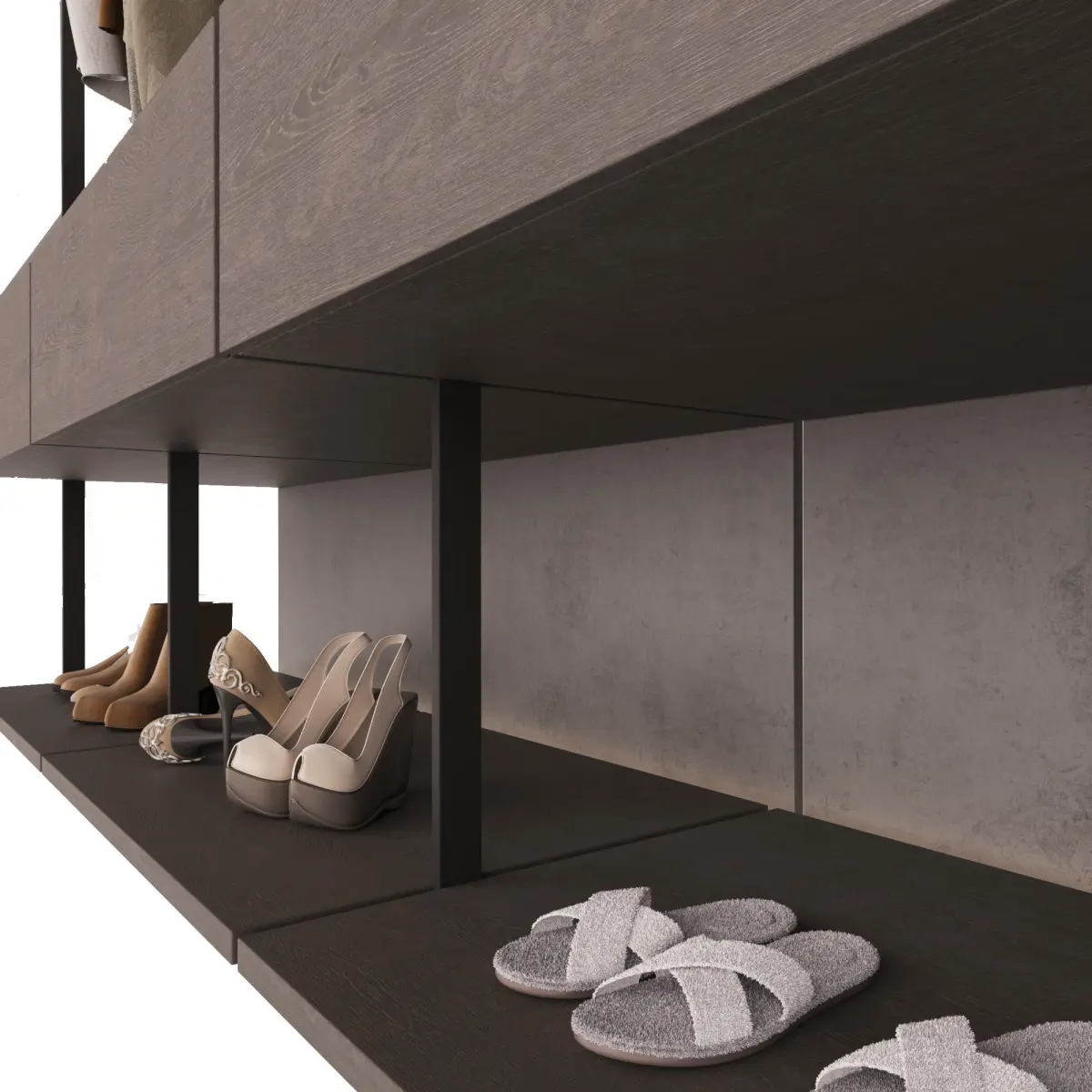 Гардеробная композиция в современном стиле прямой формы с наполнением. Модель шкафа состоит из модулей и легко редактируется.
