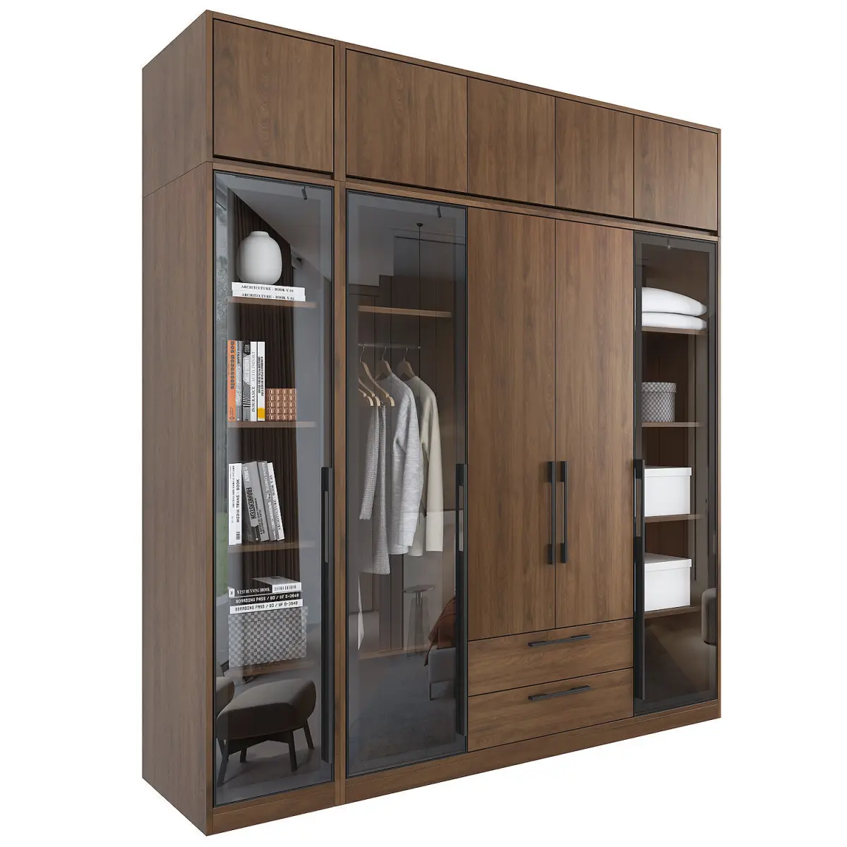 DescriptionNordic household simple bedroom glass door wardrobe modern light luxury assembly walnut color wardrobe storage cabinet