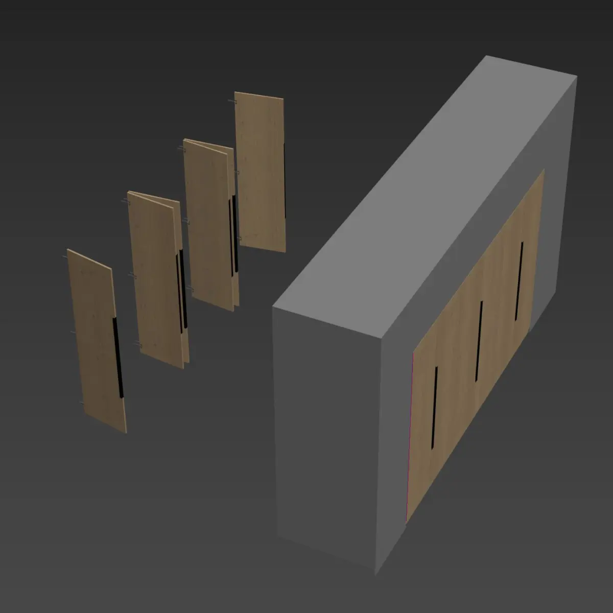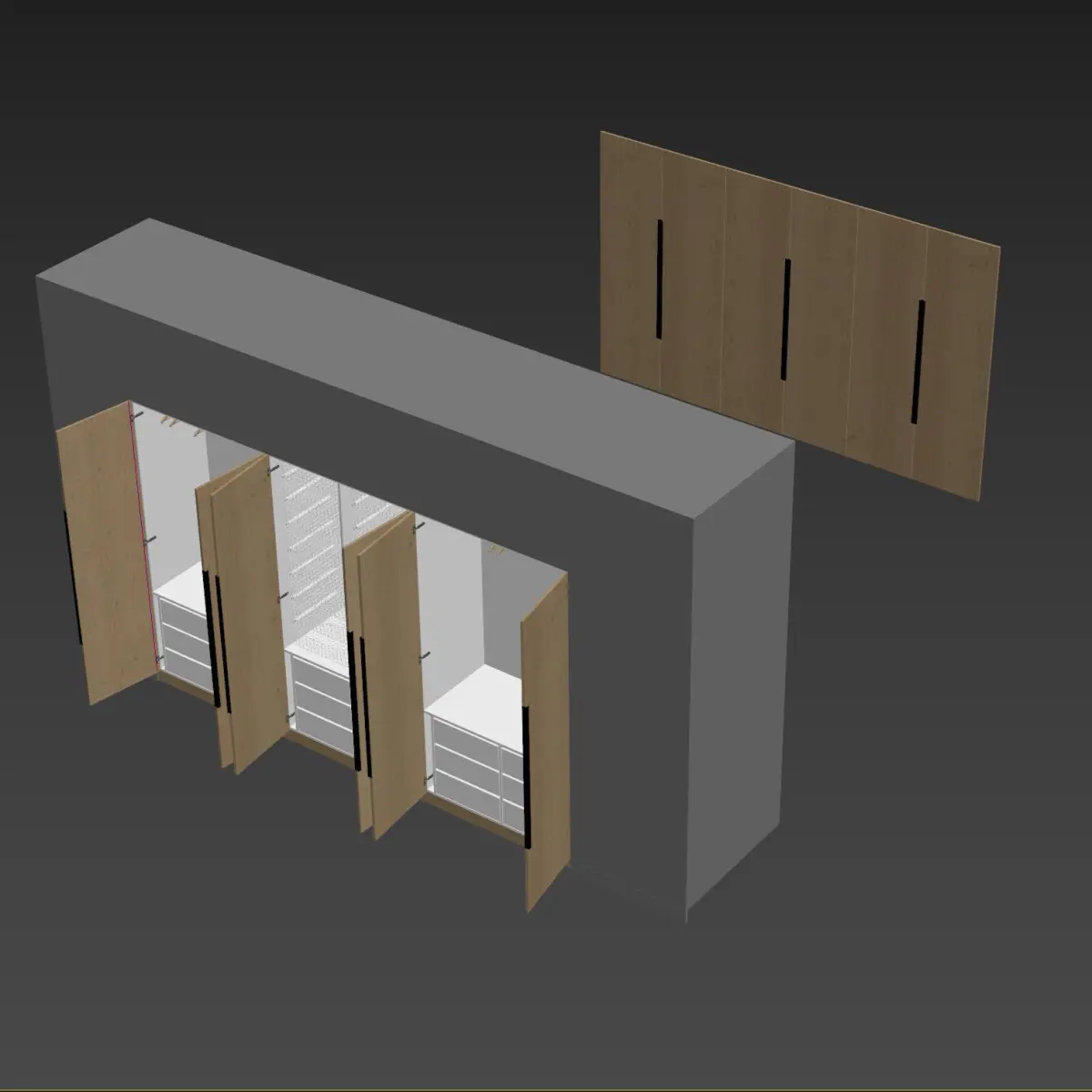 Both opened and closed doors are added to the scene, just put the one you want.Model is prepared for corona render, but easily can be converted to v-ray.