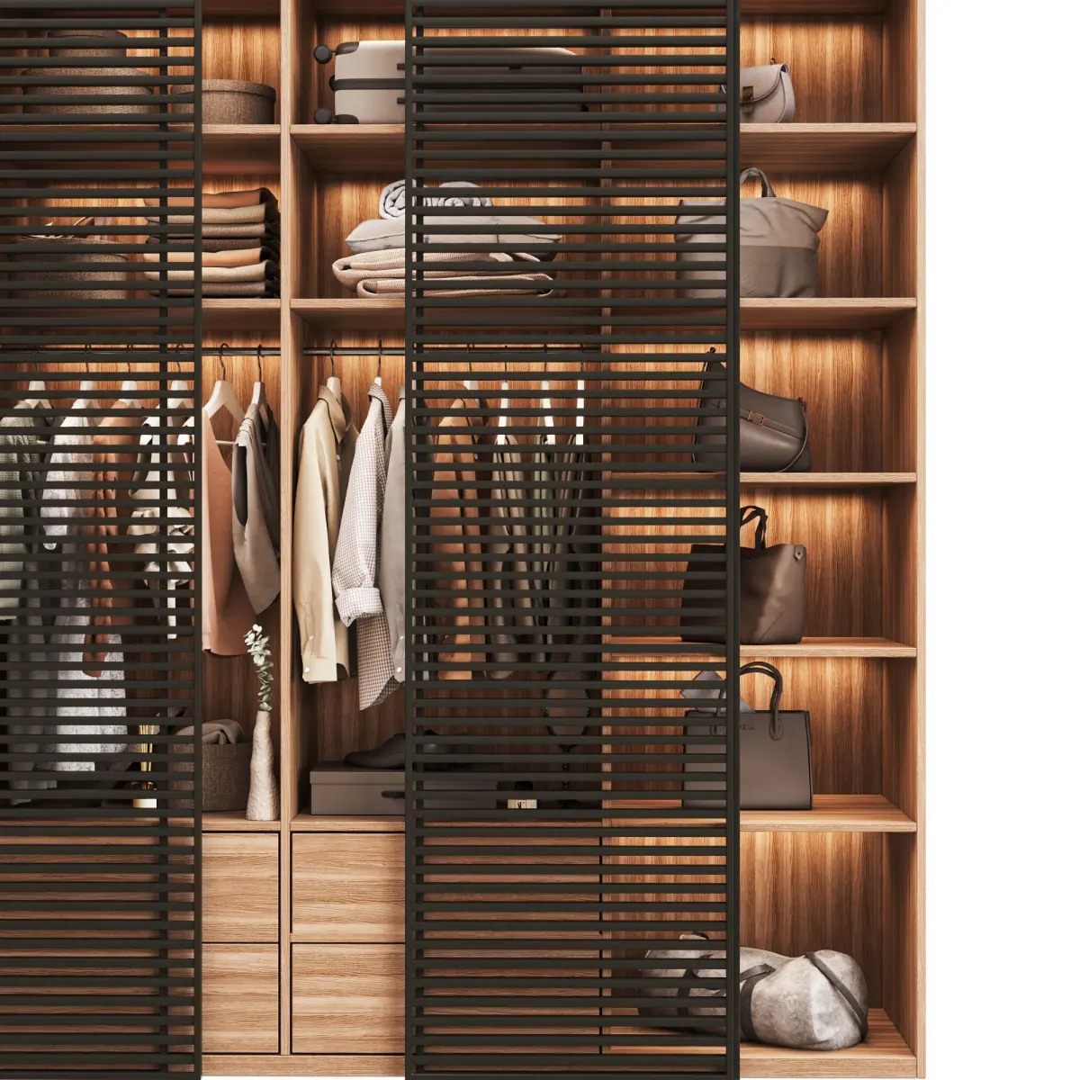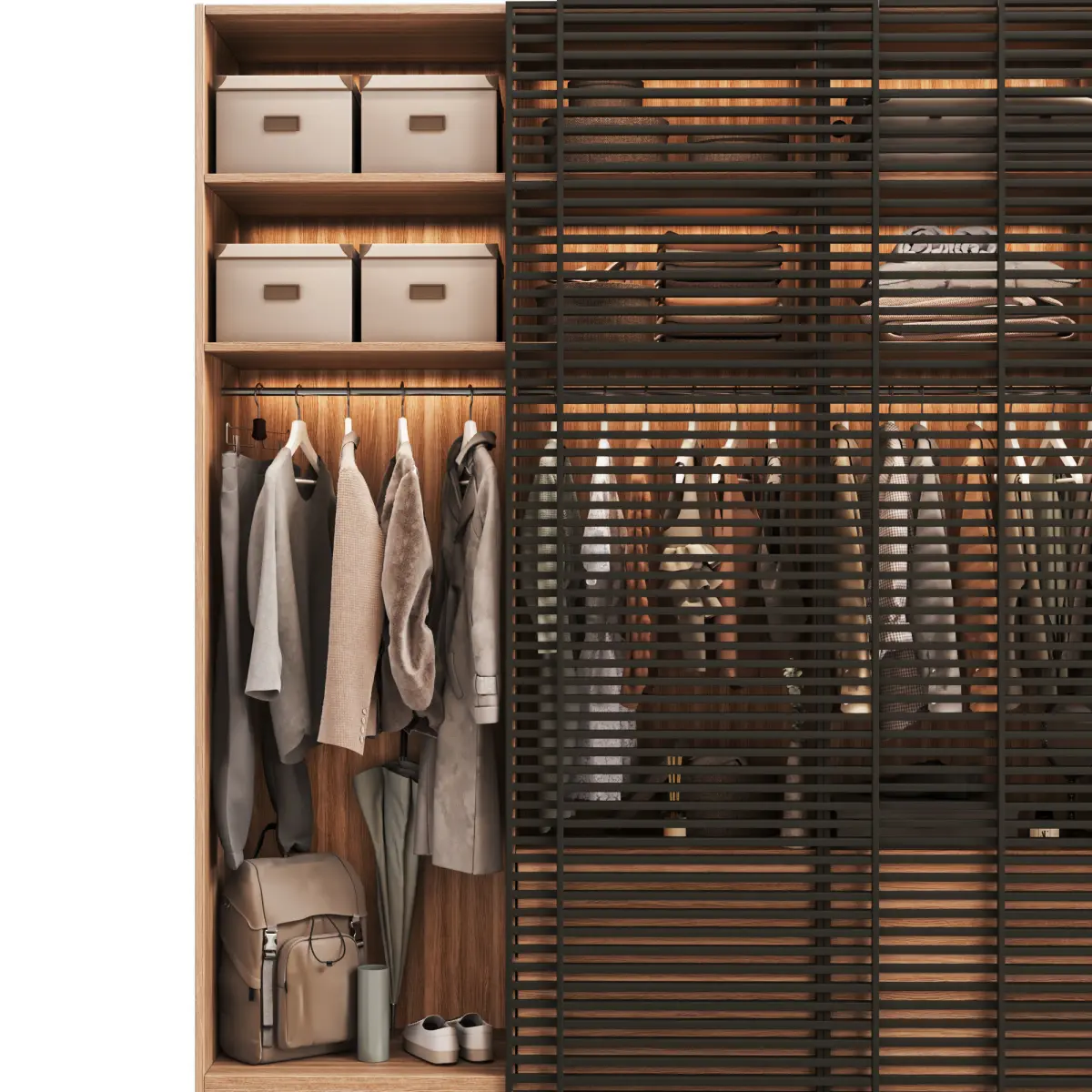 Wardrobe composition in a modern style with filling in beige design loft rack