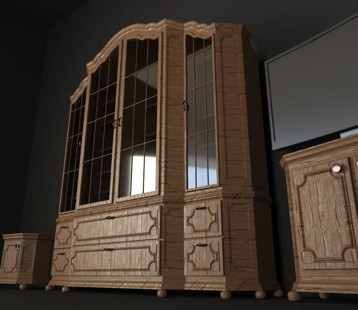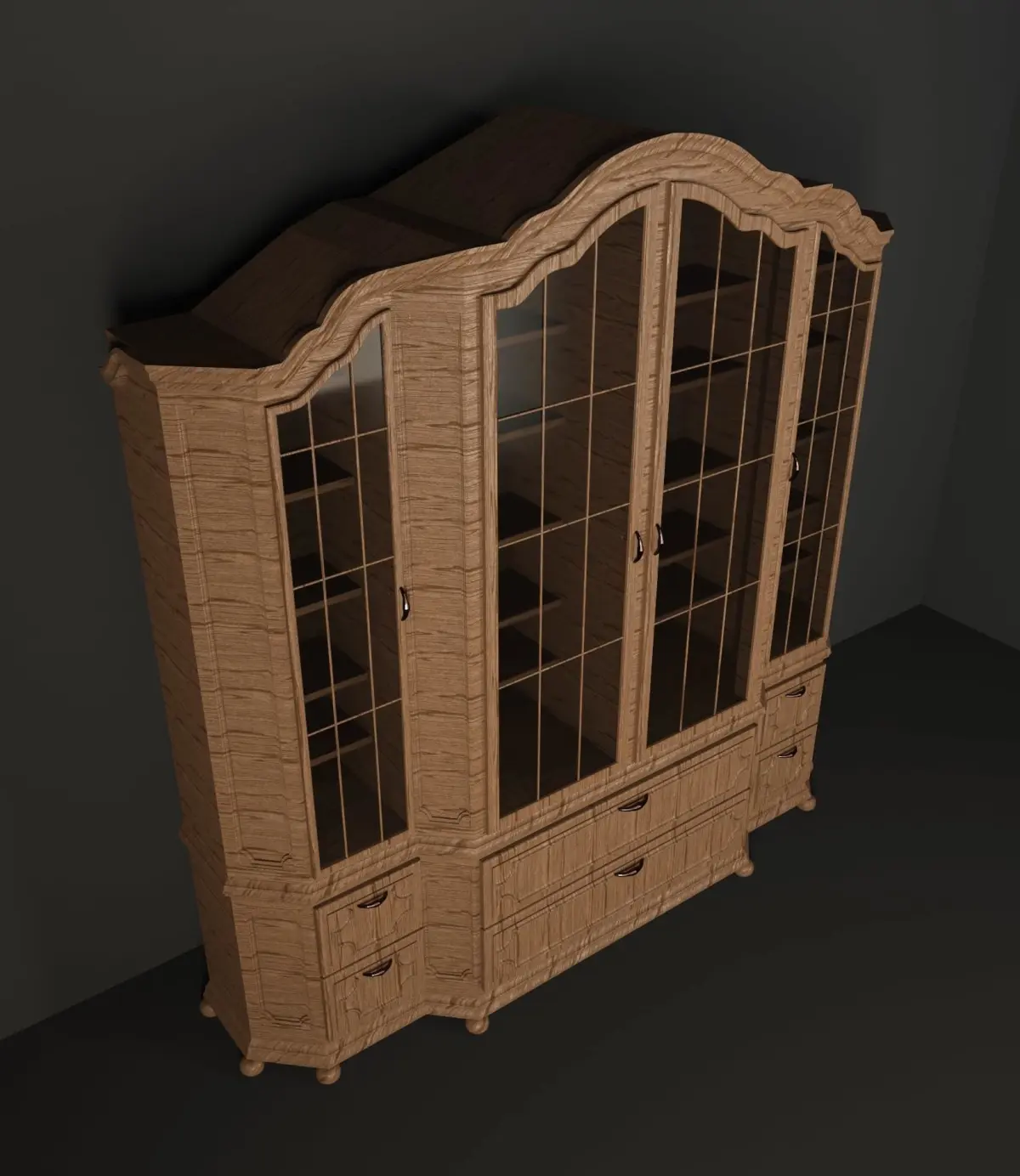 Nice wooden antique furniture set with bookcase, dresser and small nighttable. Everything is modeled in one classic style. I have modeled the furniture in Rhino 6, and you can download Rhino 6 and 4 models with perfect NURBS grid. You can also download MAX 18 (in the archive, whole scene with all materials, ready to be rendered, really comfortable), 19 and 20 files, an archive with the textures, MTL file, FBX and OBJ files. After exporting from Rhino, the grid became polygonised and complicated, but it is still very smooth and structured. I hope you will enjoy my work.P.s. You can buy each part of the set separately a little bit cheeper in my models.