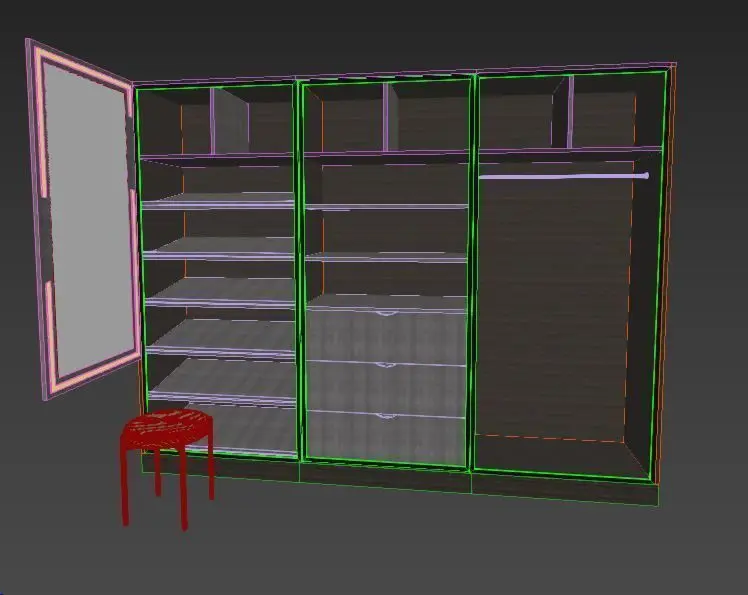 WARDROBE hallway with two doors and bench Low-poly 3D model