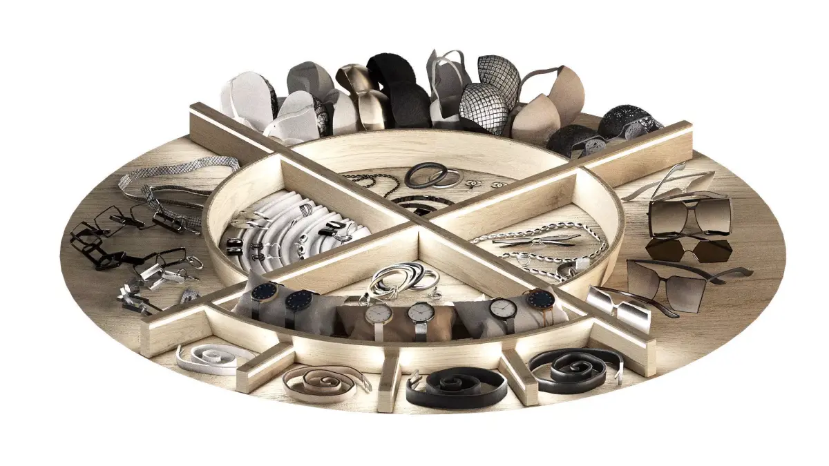 You may have been looking for: Jewelry Organizer trays, Bracelet Stand, Dressing Room island , Watch Organizer, Earring Holder, Drawers, Makeup Organizer, Jewelry Storage, Decor Storage, wristwatches, leather belt, chanel, pendant, chain, bra, lingerie, women's wardrobe, display case with accessories, shop window, display cabinet