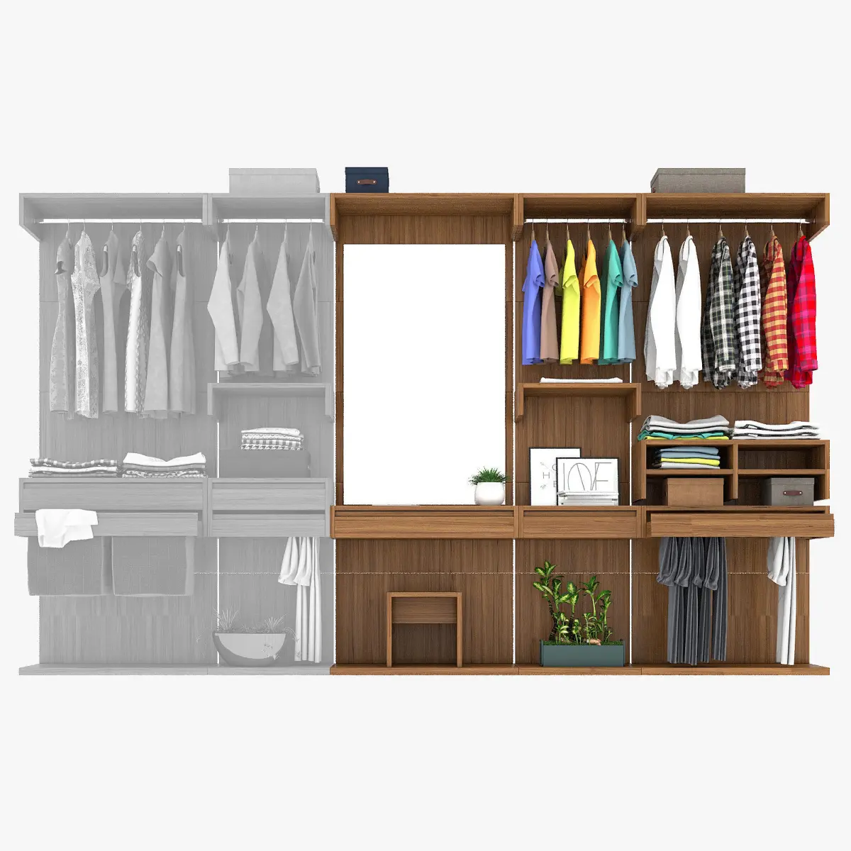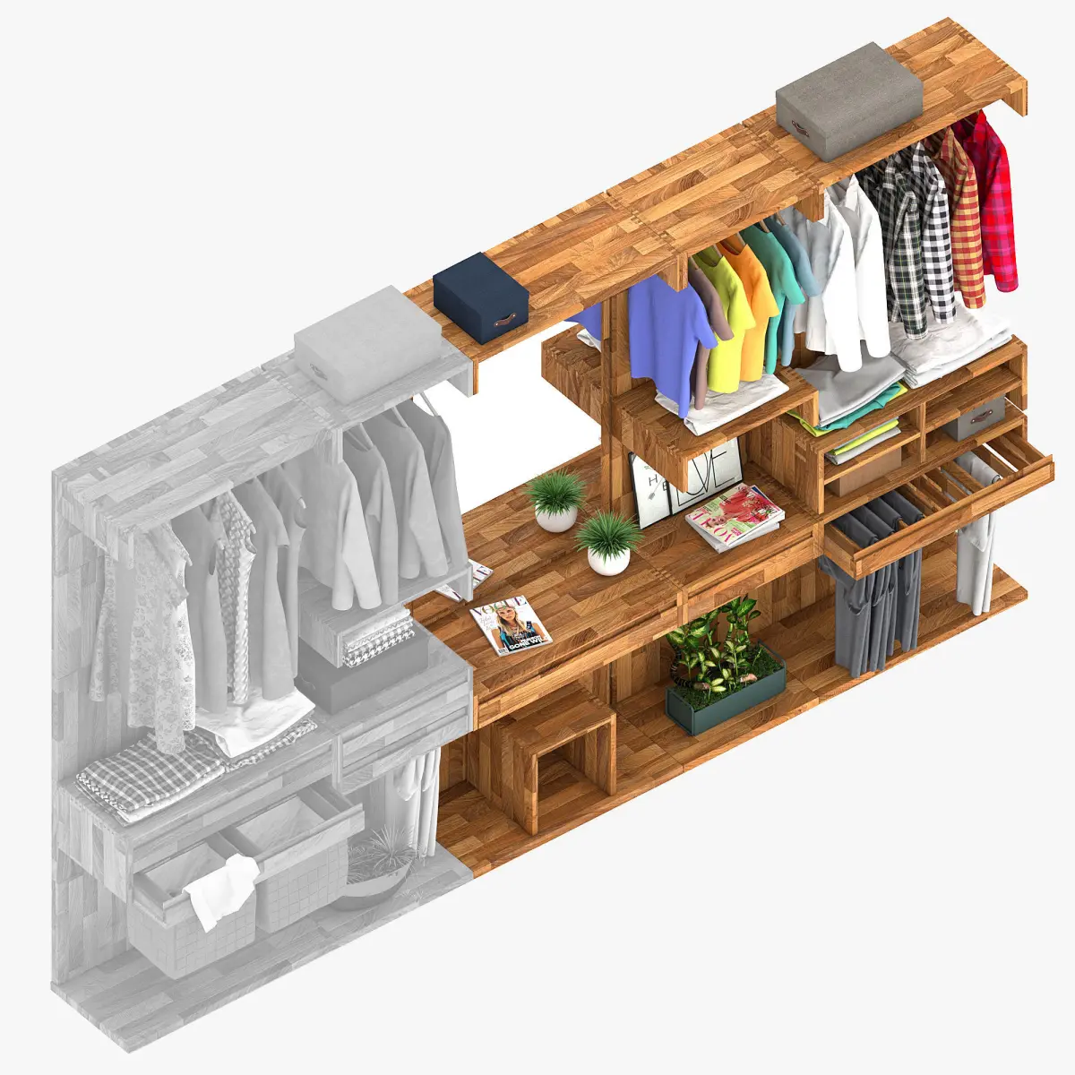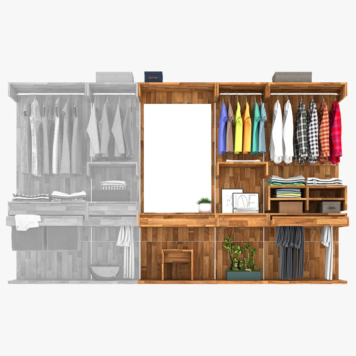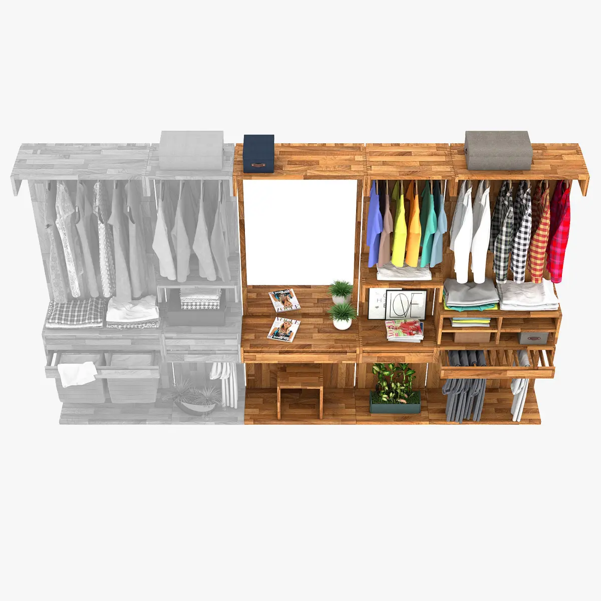 Wardrobe systems are made in 2 variants of wood. In the list of the wardrobe material it is id 1 and id 5.