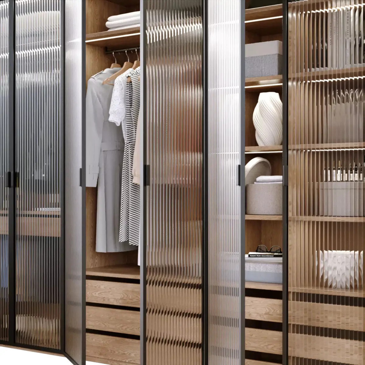 Wardrobe with corrugated doors
