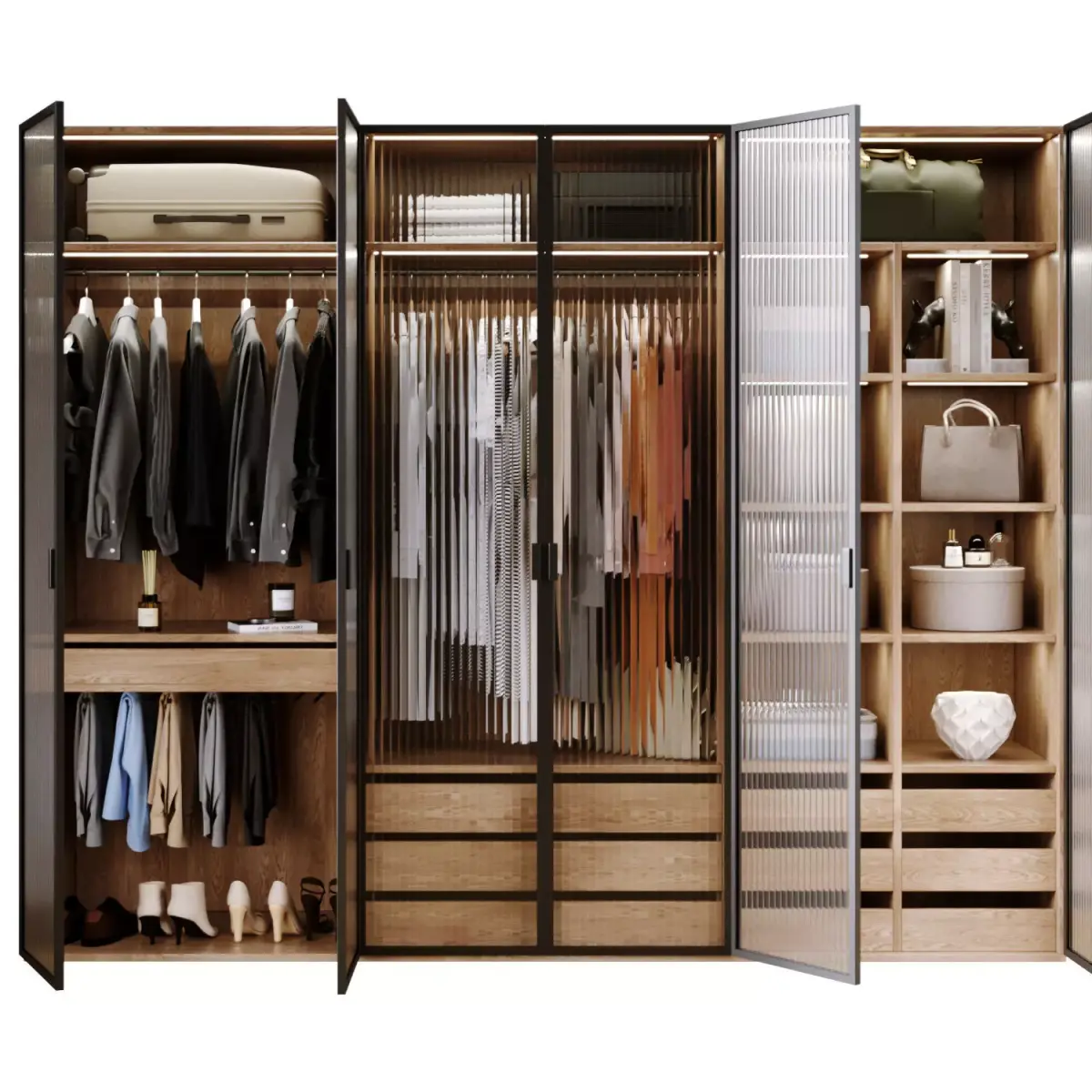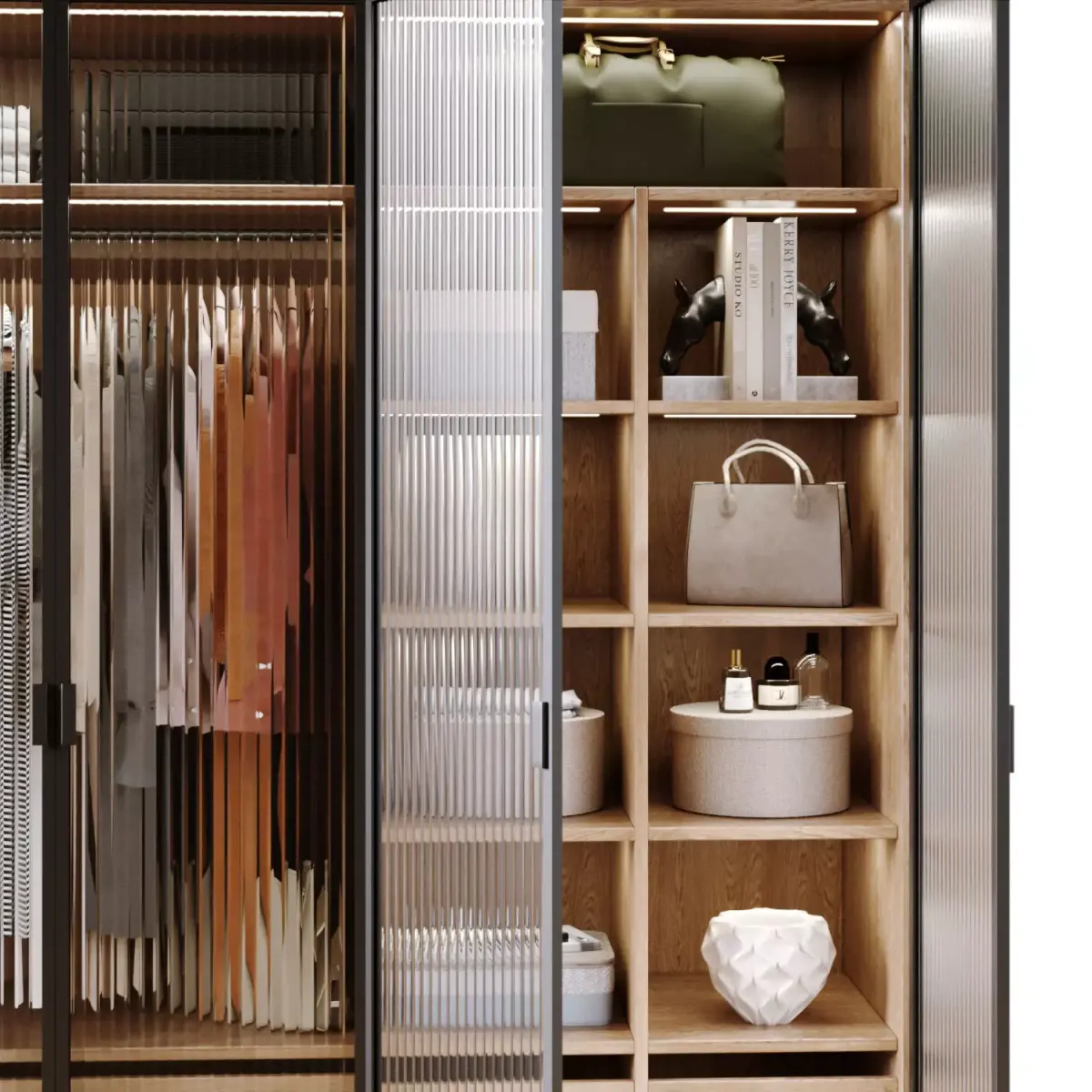 wardrobe with lighting, women's bag