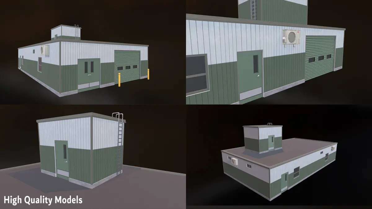 2) Air Condtioners , pipes and ladder : Basecolor texture , Norma map texture , Roughness texture , Metallic texture , Ambient Occlustion texture and Opactiy map texture.
