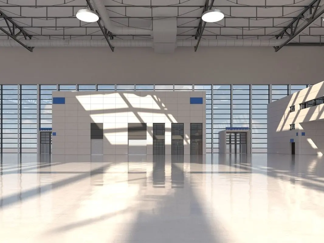 A highly detailed 3d model of a warehouse / hangar / exhibition hall / airport terminal.