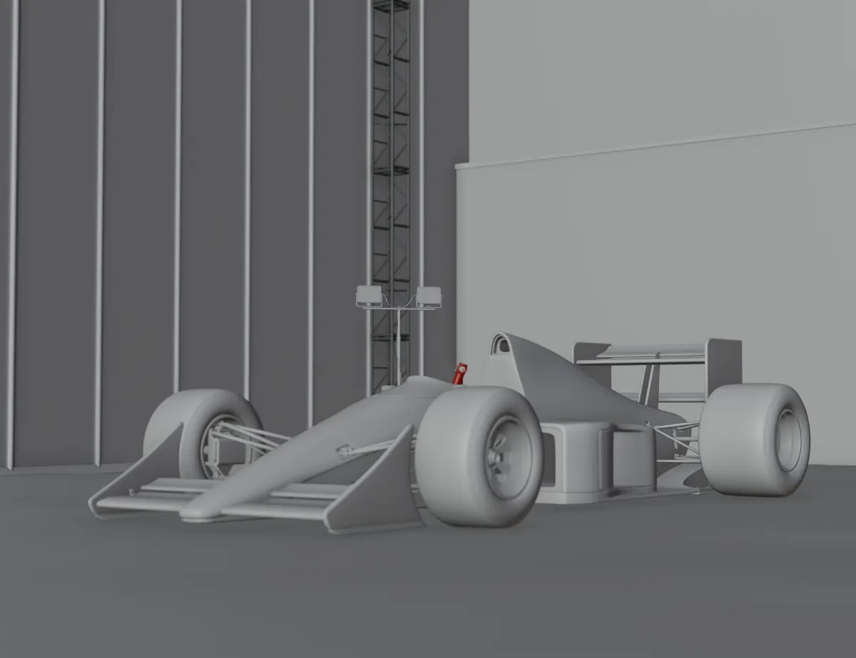 Natural lighting with realistic shadowsIndoor garage/warehouse style environmentDetailed textures on floor and wallsRender-ready lighting setup
