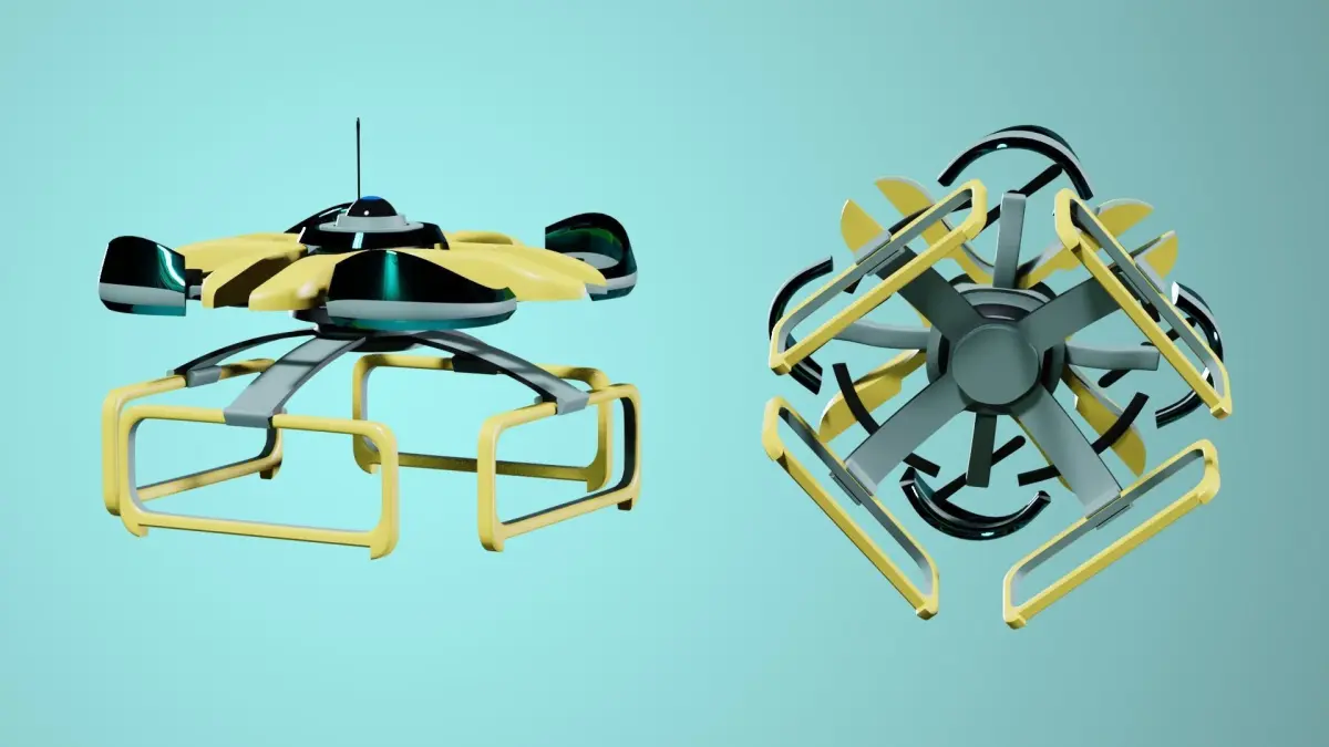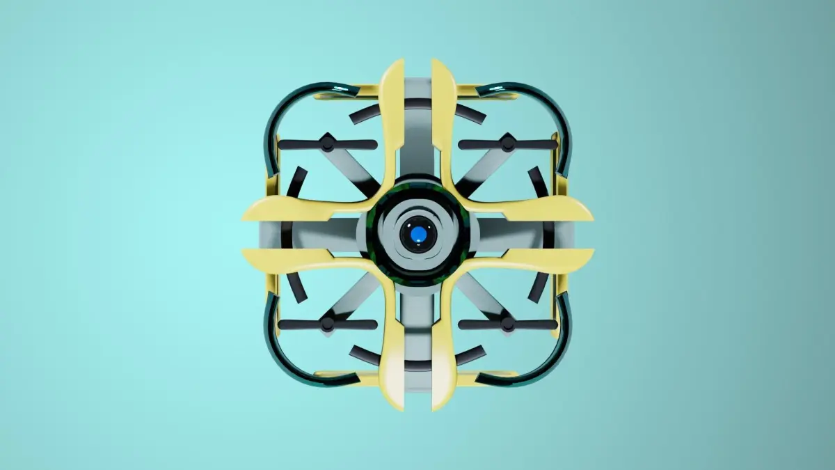 Modern warehouse drone. Autonomous. Slightly stylized, not realistic.