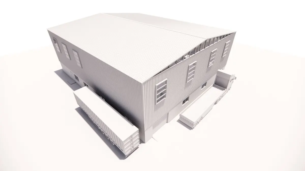 Steel structure Warehouse G+M BIM modeled in revit and rendered using Enscape.