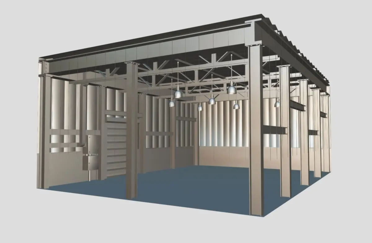 Low-Poly Empty warehouse interior.