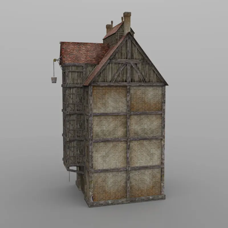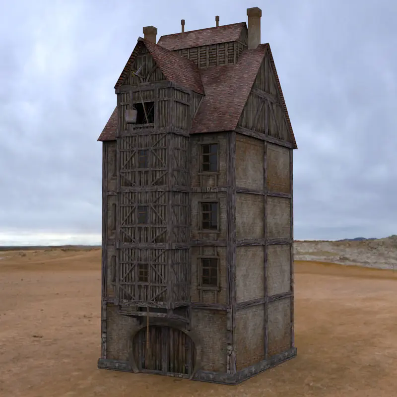 A detailed dockside warehouse building suitable for realistic and fantasy renders.