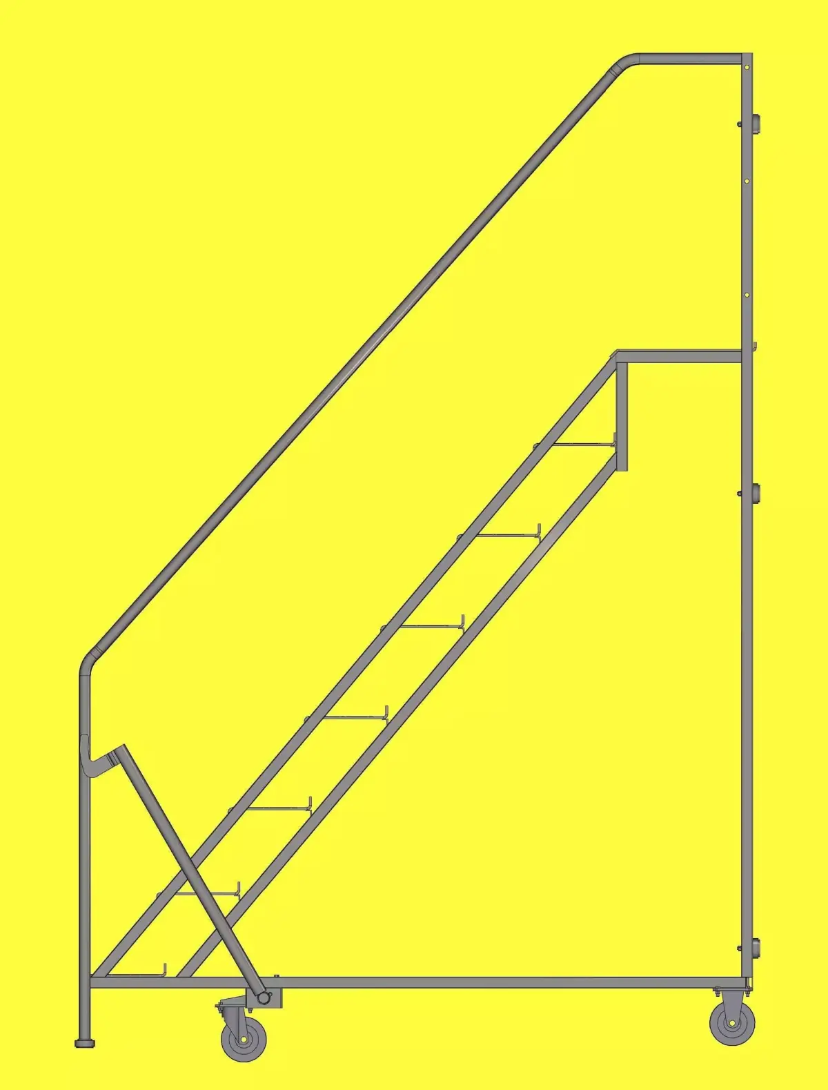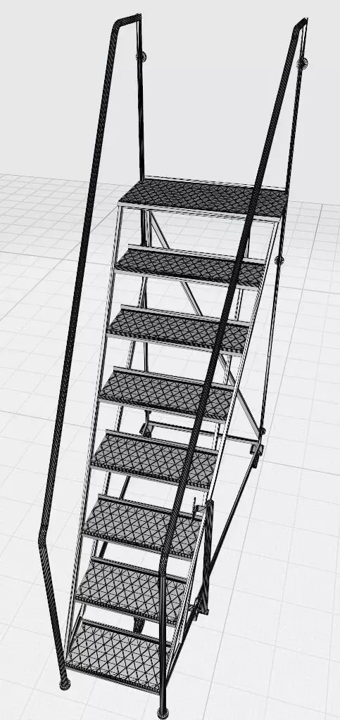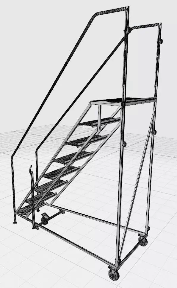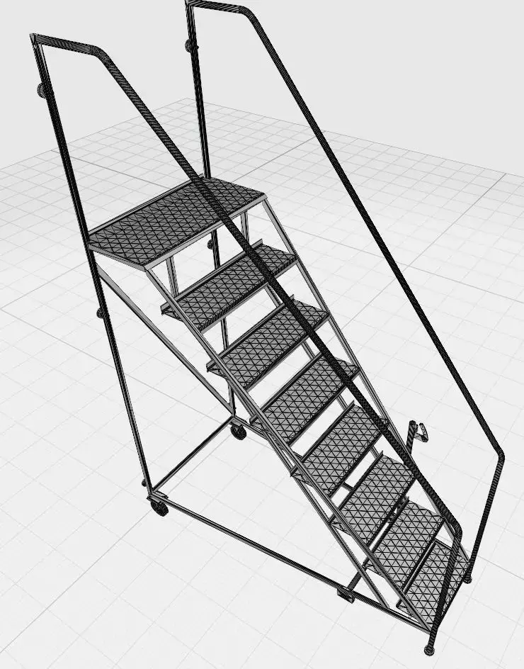 I present a highly detailed 3D model of an industrial mobile ladder with a platform, designed for warehouse, manufacturing, and logistics environments. It accurately reproduces the real-world structure and includes all functional elements for safe operation, easy mobility, and protection of surrounding objects.Structural Features:• The front of the ladder is equipped with rubber damping supports that ensure stability and protect surfaces upon contact.• A lever mechanism is integrated near the front support legs, allowing the deployment of a third swivel wheel when needed—for effortless movement of the structure.• Two main wheels are mounted at the rear for mobility.• Six damping pads are positioned on the rear frame above the wheels to protect warehouse racks or walls during quick parking—they absorb impacts and prevent damage.• The entry width is 600 mm, while the working platform expands to 1000 mm, providing a comfortable space for the operator. This design gives the ladder a distinctive, enhanced appearance, combining compactness with functionality.• Clean topology optimized for rendering or further texturing.Model Dimensions:• Height: 3500 mm• Width: 1080 mm• Length: 2400 mmNote:The model does not include textures. All materials are presented as basic shaders, allowing flexible customization of appearance to suit your needs.File Formats:• STL1/OBJ – 72860• STL/OBJ – 45880• 3MF – 105200• FBX, MAX – average qualityApplications:Architectural visualization, technical scenes, game environments, VR/AR, industrial simulationsIf the price does not match your budget — propose an amount you consider fair; I am open to constructive dialogue and collaboration.