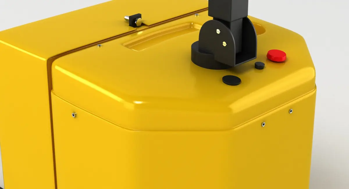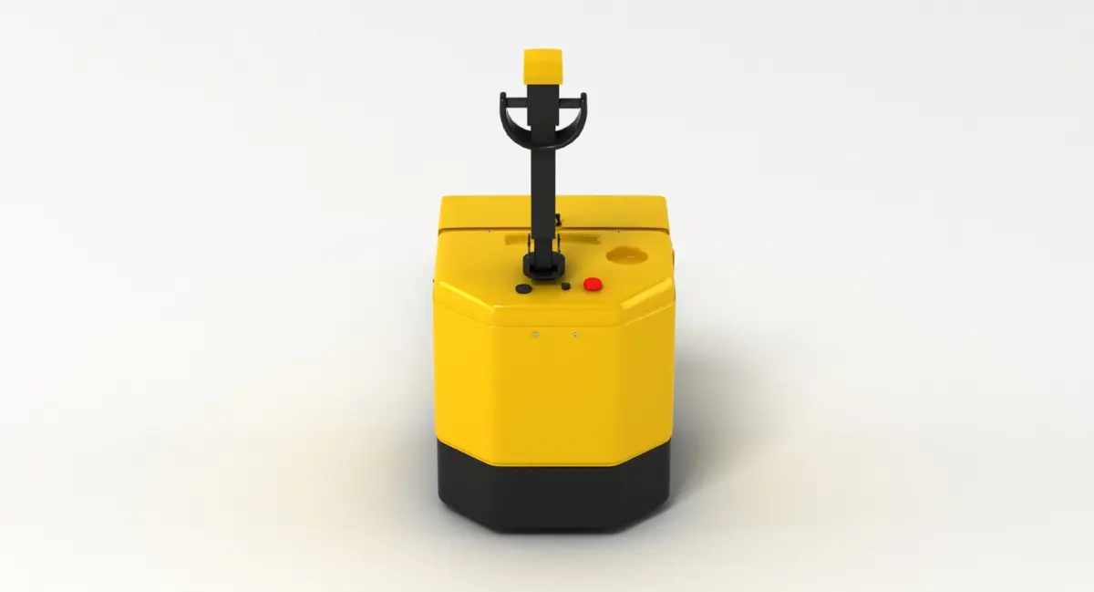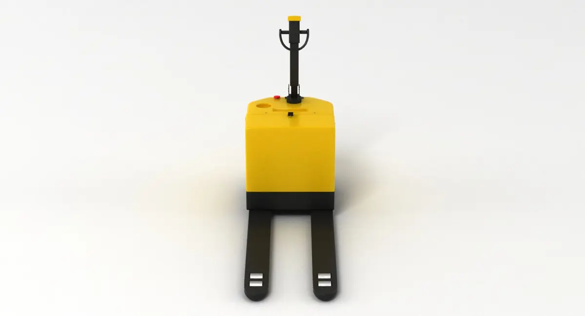 A DETAILED 3D MODEL OF A PALLET TRUCK;