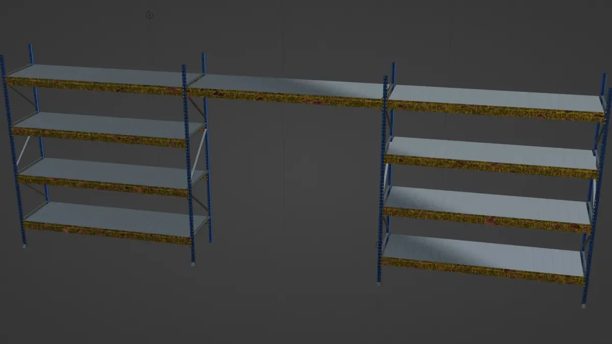 Created two models of industrial warehouse shelves by using Blender. They are great pieces if you have a warehouse project setting or game.