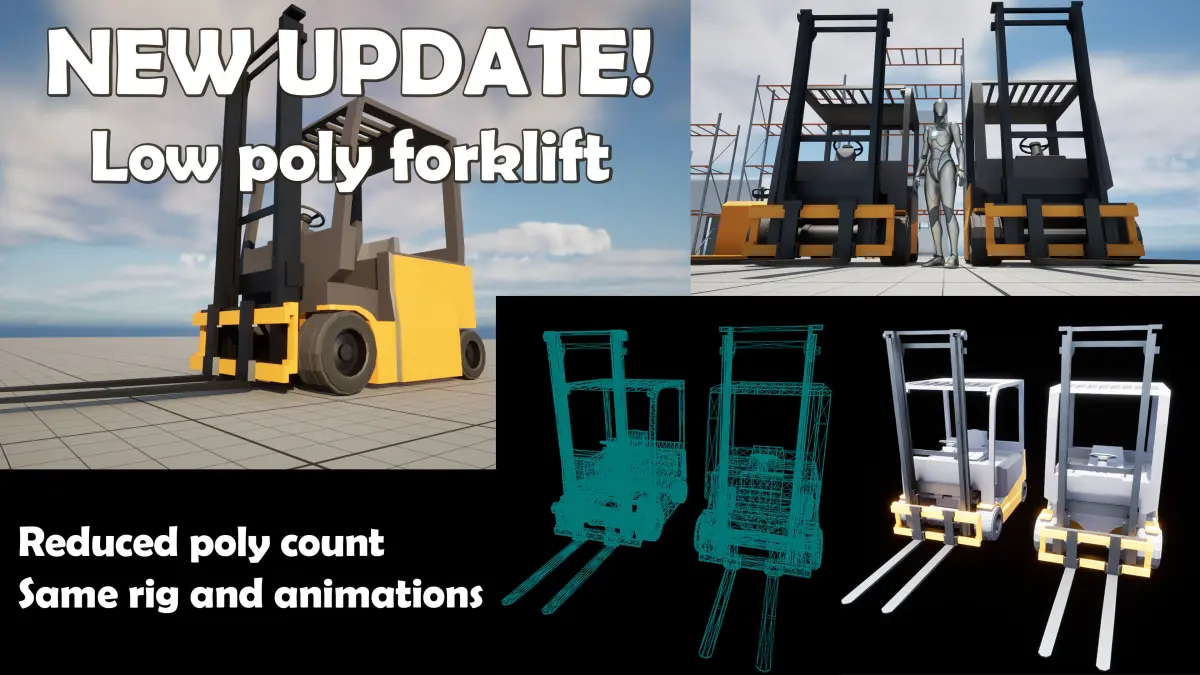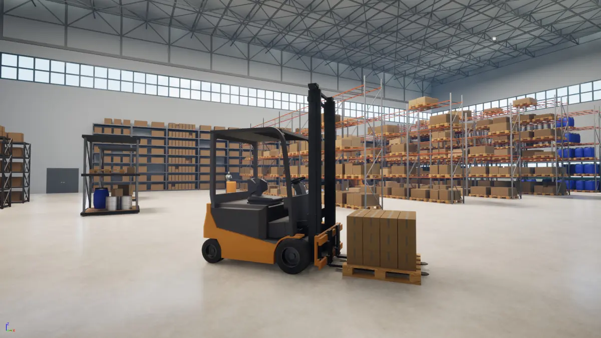 Modern warehouse props with modular warehouse building pieces and props. Rigged Forklift and Pallettruck with animations and handmade physics assets. Animations for doors, boxes and some idle animations for the manny using the props.