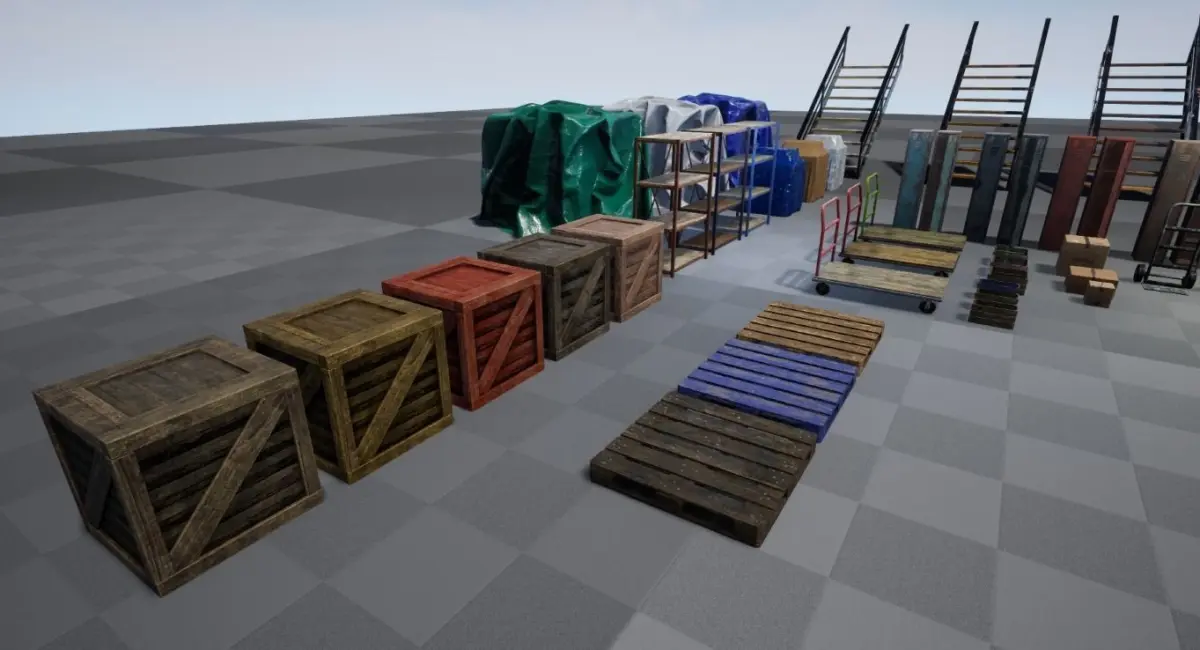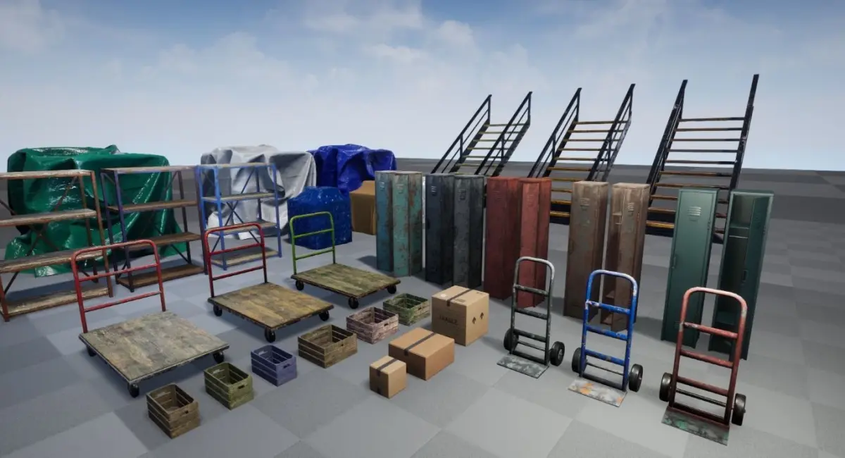 A set of Warehouse Props and Parts with regular updates. (See video)