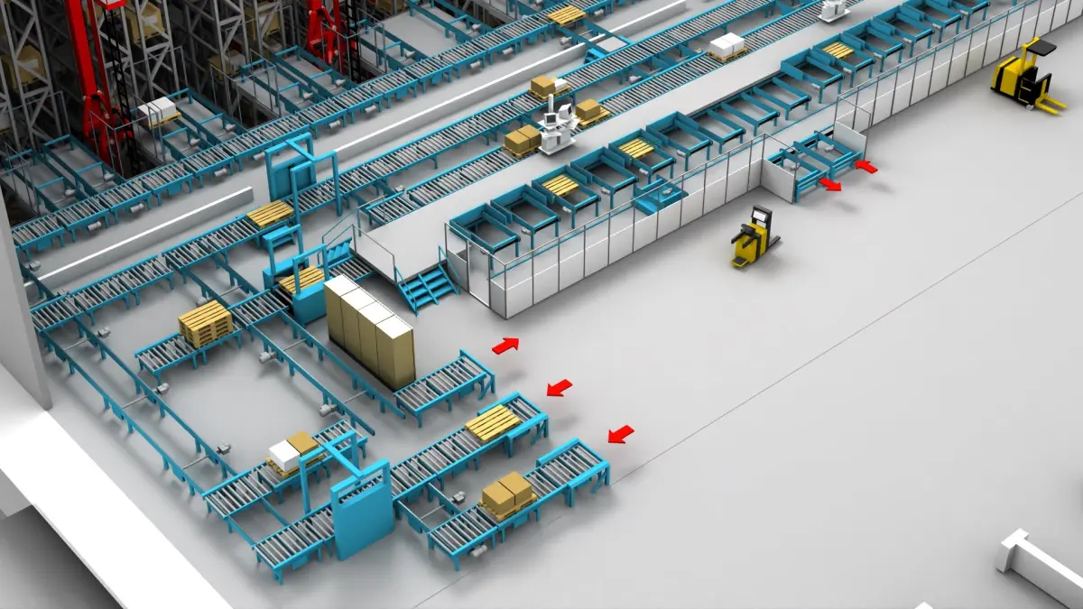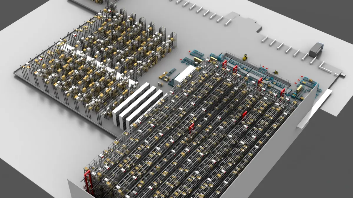 - Warehouse with conveyors and cranes for high storage of pallets and boxes. - Lowpoly -No textures -File formats: MAX, OBJ, 3DS, FBX, C4D