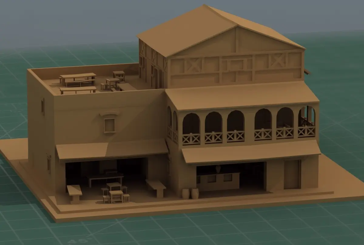 Wargame Scenery Tavern 3D Print Model. Suitable for fantasy, ancient, medieval or many forms of table top wargame.