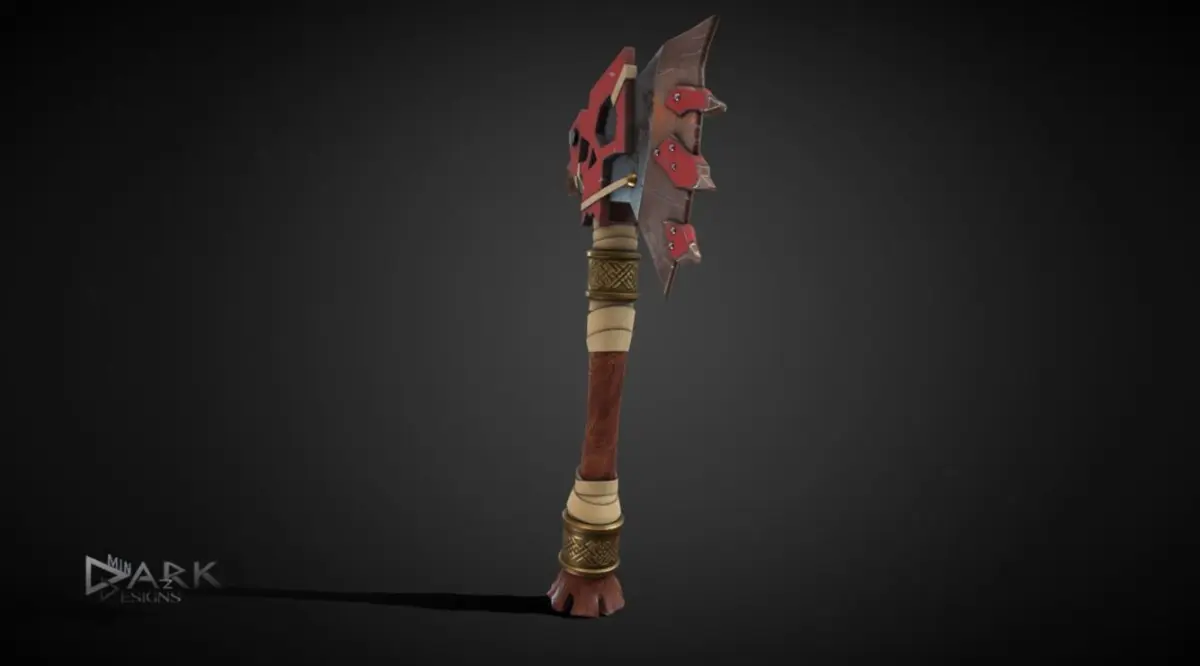 The weapon might look crude but getting hit with this mighty one handed Axe would hurt regardless. It also features some decorations to make it even less useful in actual combat to wield for any of the other races.
