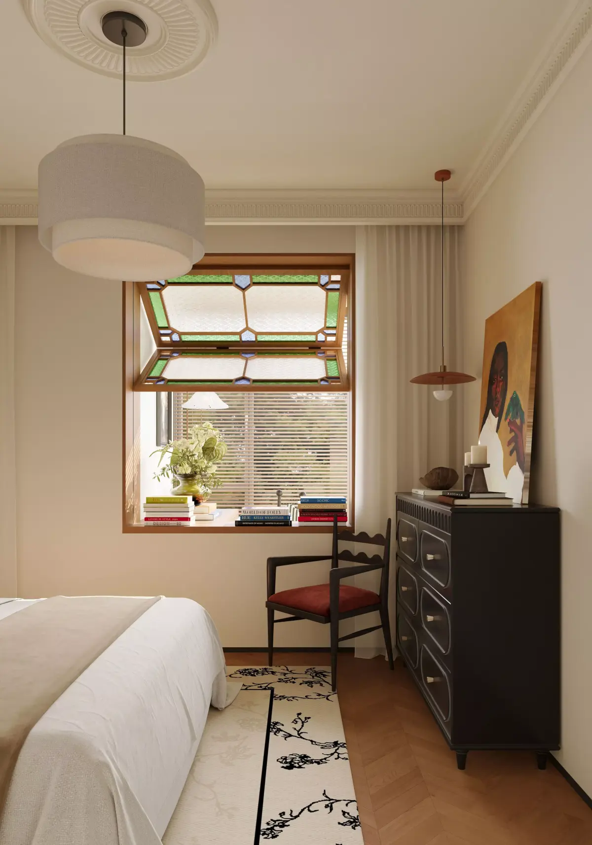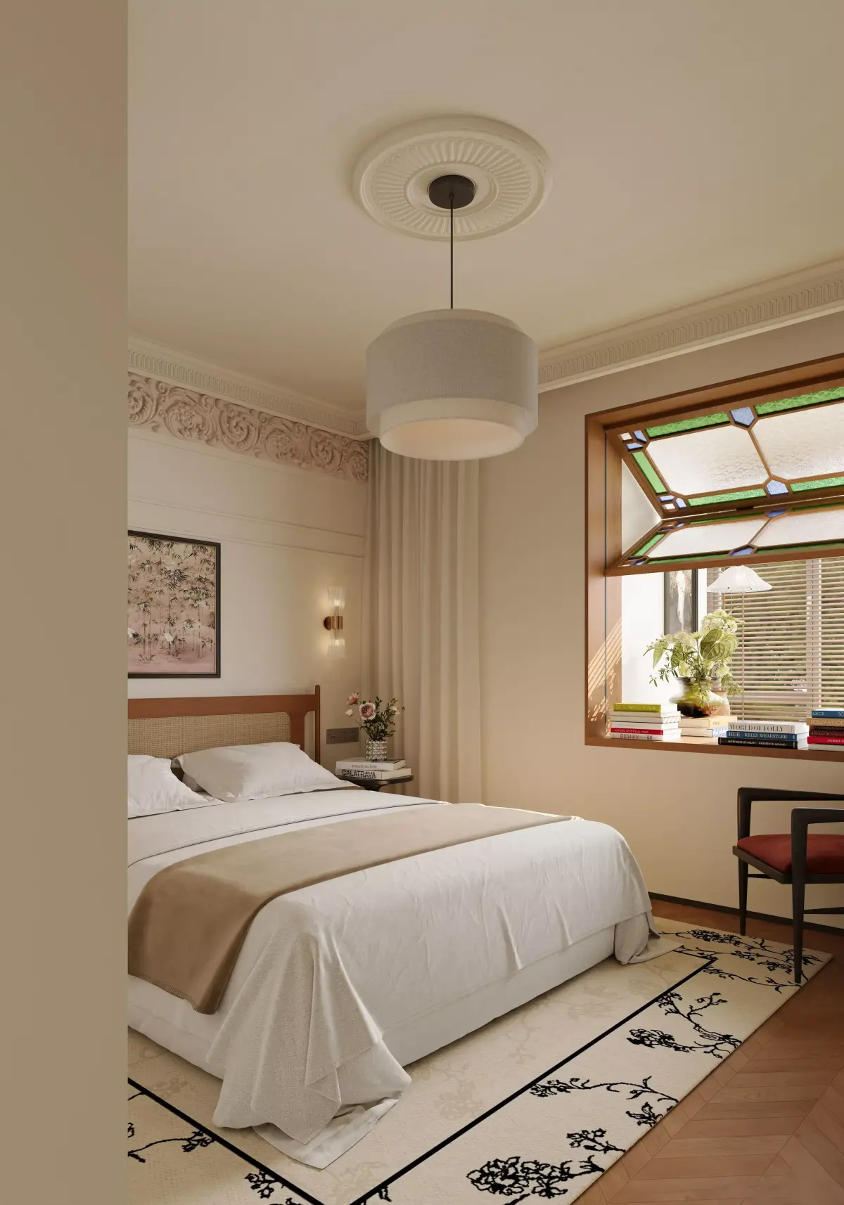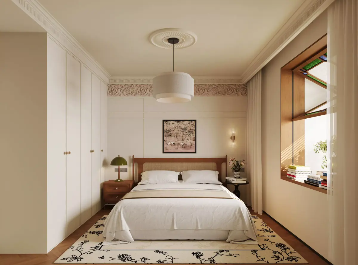 Warm Classic Bedroom with Cozy Double Bed 3D model