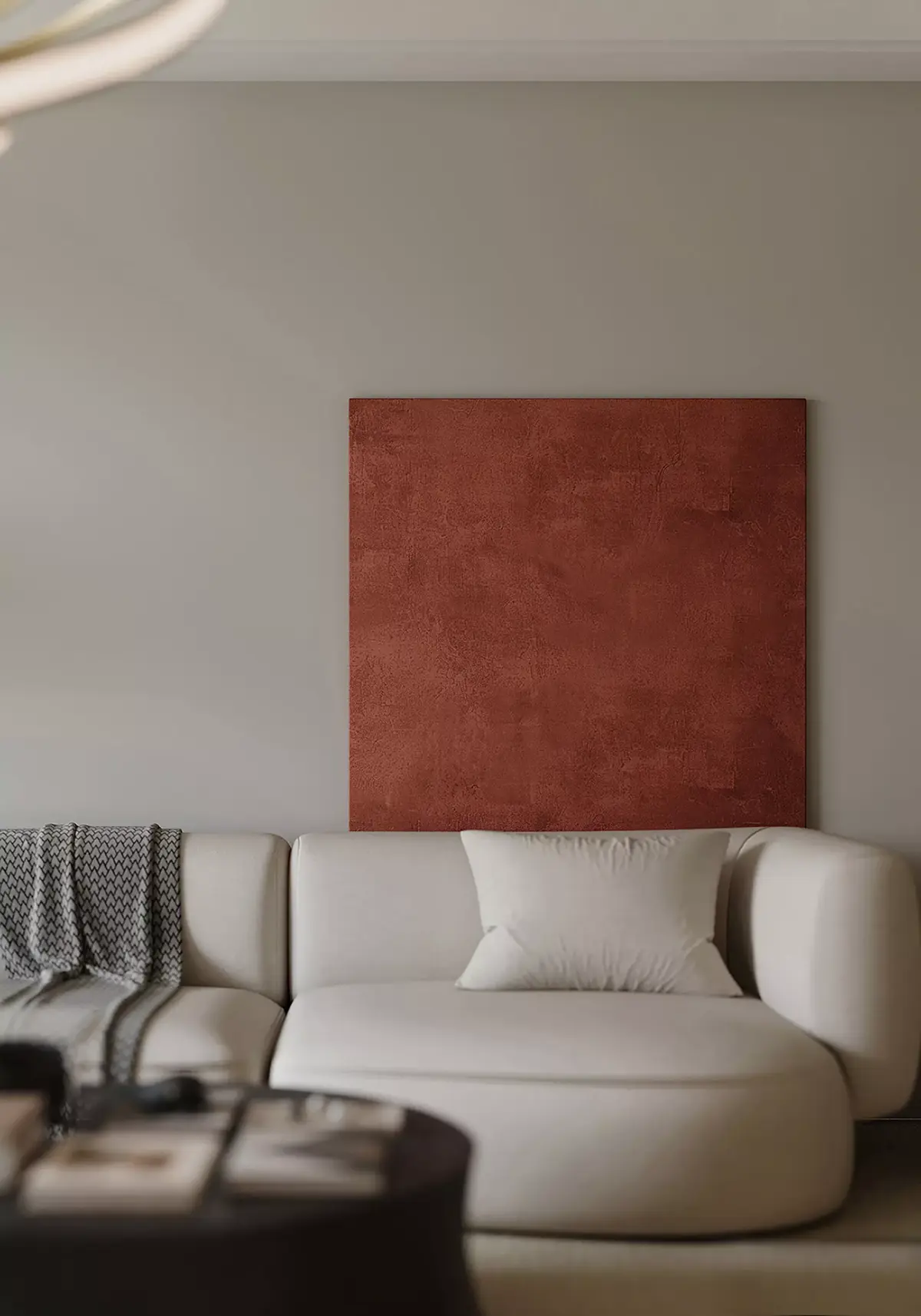 Warm Minimal Living Space with Modern Sofa and Linear Fireplace 3D model