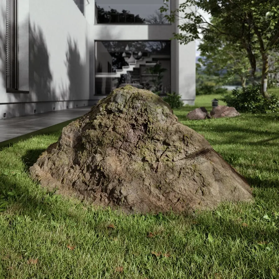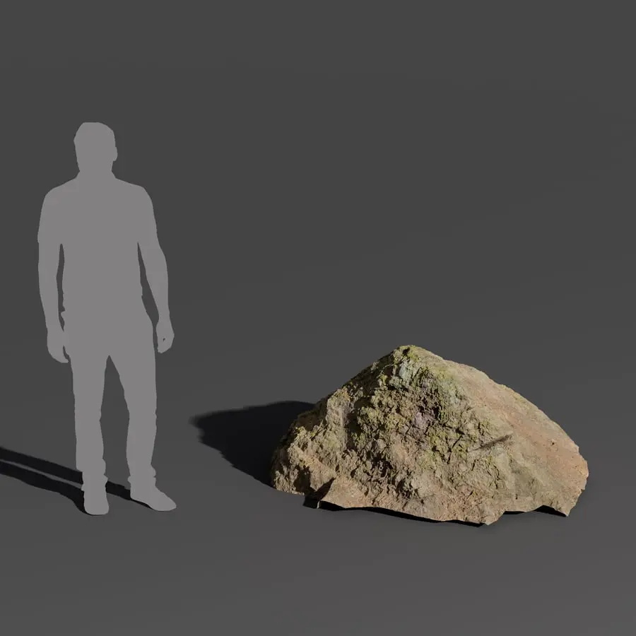 Warm Toned Mossy Jagged Large Rock Boulder Model
