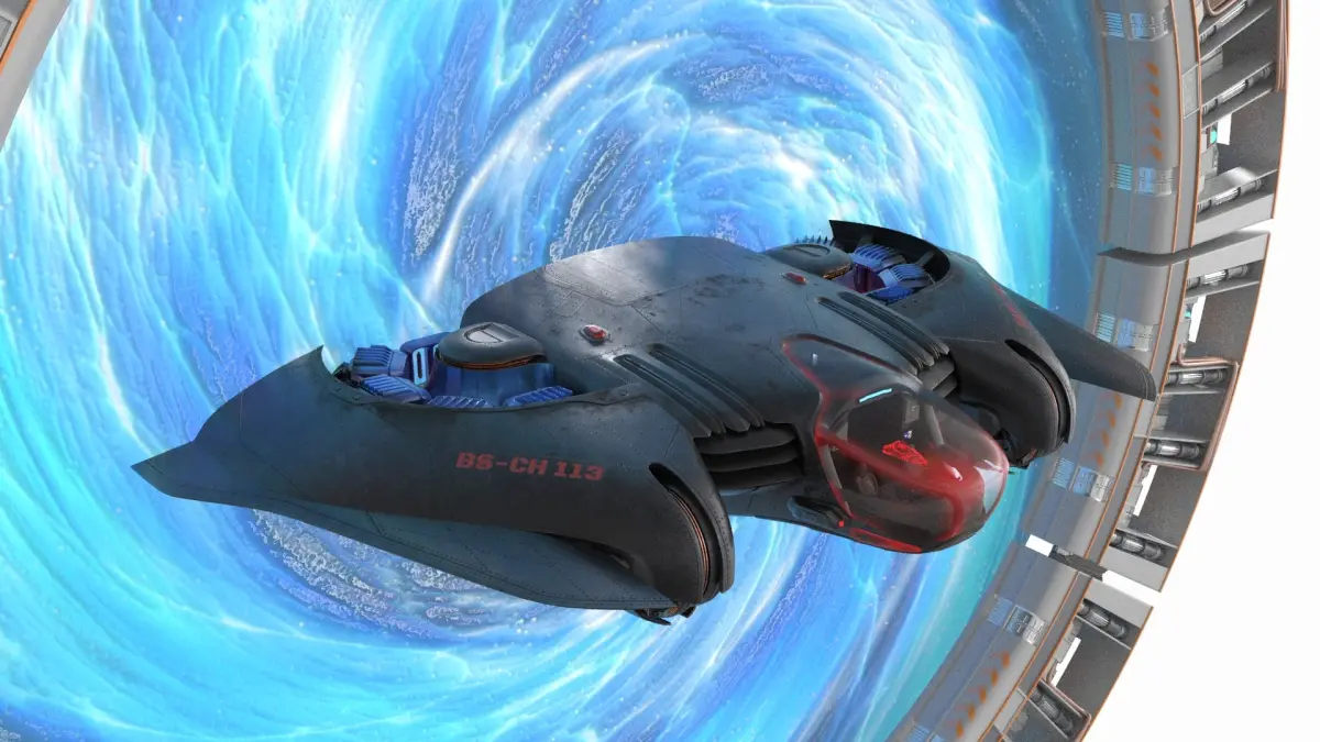 For sci-fi animations, space travel cinematics, video games involving warp technology or interstellar combat, VR space exploration, teleportation mechanics visualization, and futuristic tech showcase presentations.