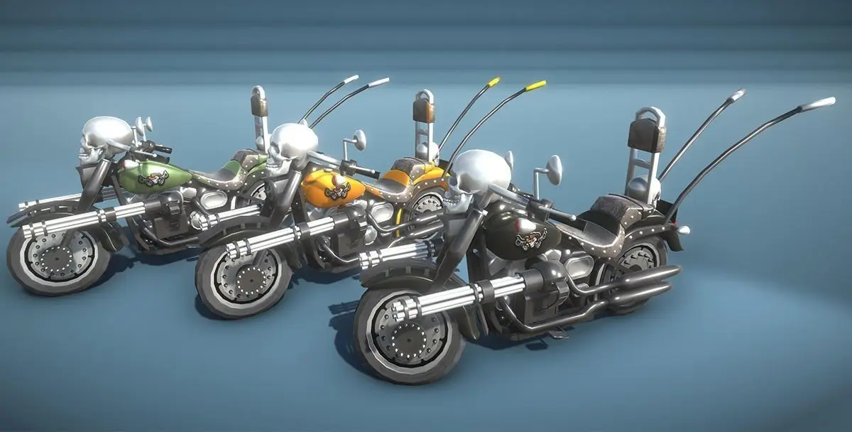 This asset contains a 3D model of a warrior bike, this asset could easily be integrated into any environment. It is a highly detailed model with texture customizable, realistic warrior bike. This model promises you a neat & tidy design that would completely make the integration of this asset in your game/ environment much easier. The model allows you to modify the bike textures and make it much more interesting & aesthetic as per your requirements. It is a low poly model. The poly counts for the given model are 40,528 Vertices & 78,206 Triangles. Along with the mentioned feature this model has atleast 3 textures in Atlast. The model separations for this project are the handle, Back tire, Front tire, Left and Right Machine Guns. It can be customized into 4 different colors i.e. Red, Green & Yellow. The asset come is a Fbx Format.