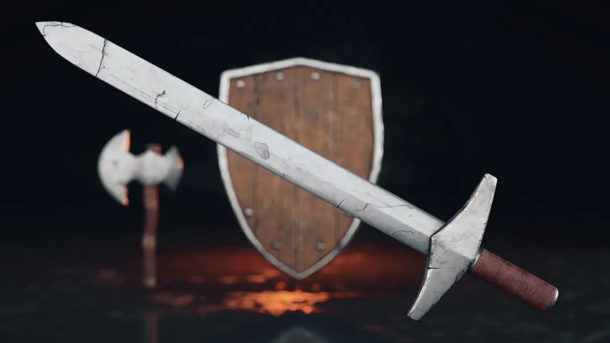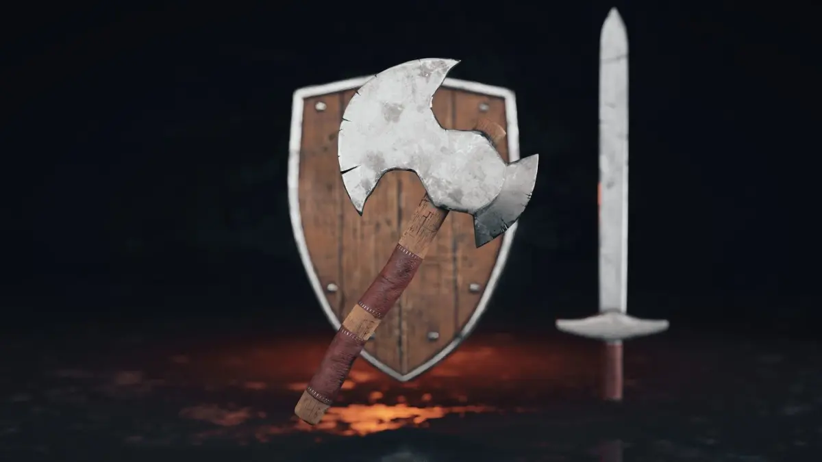 This set contains 2 hand melee weapon and shield. All models have a UV and texture.