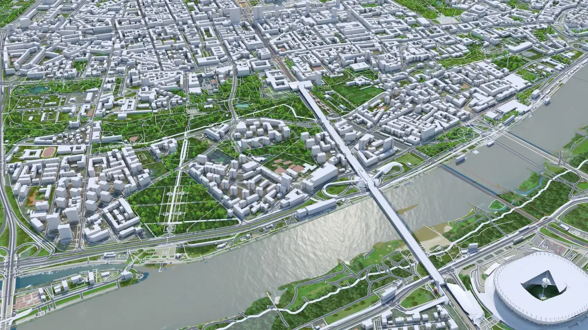 Accurate 3D city model and its surrounding area based on GIS data Year 2022