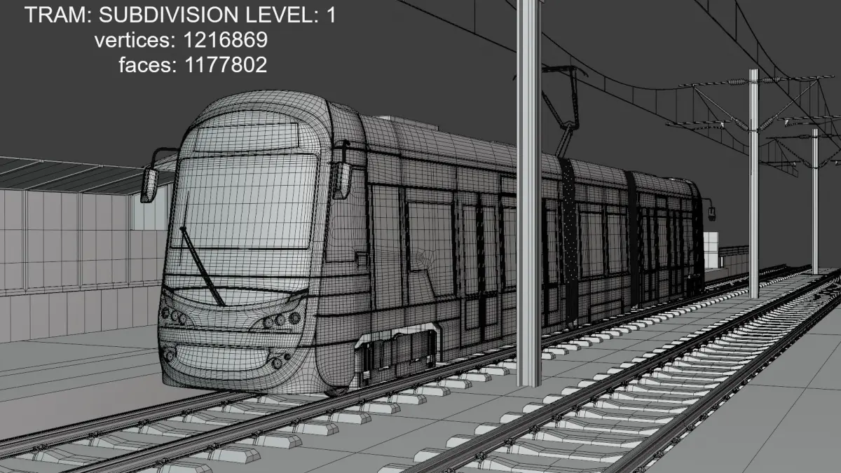 - Tram model is ready for subdivision.
