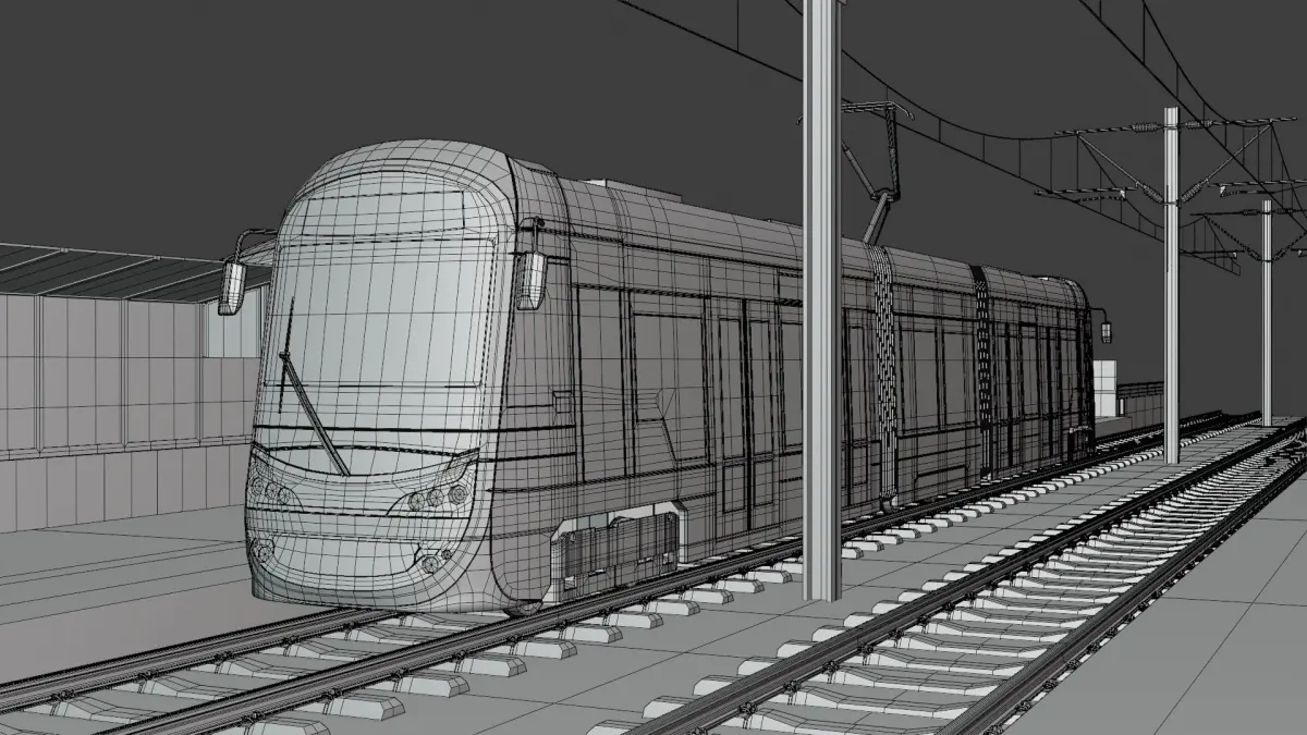 - This is 3D model of elevated station with Warsaw tram Hyundai Rotem.