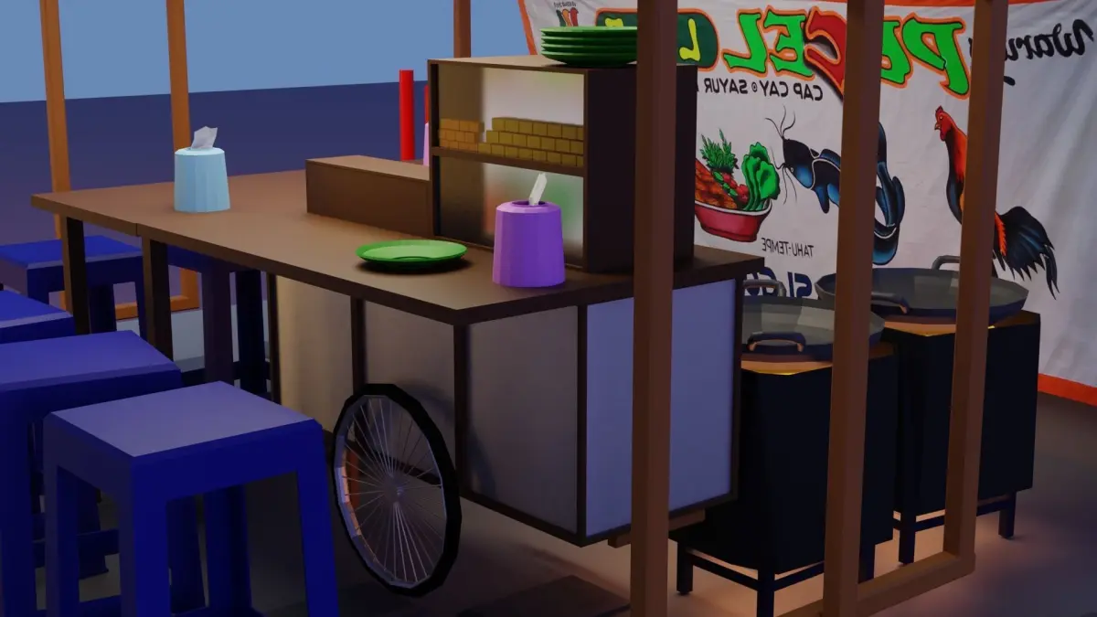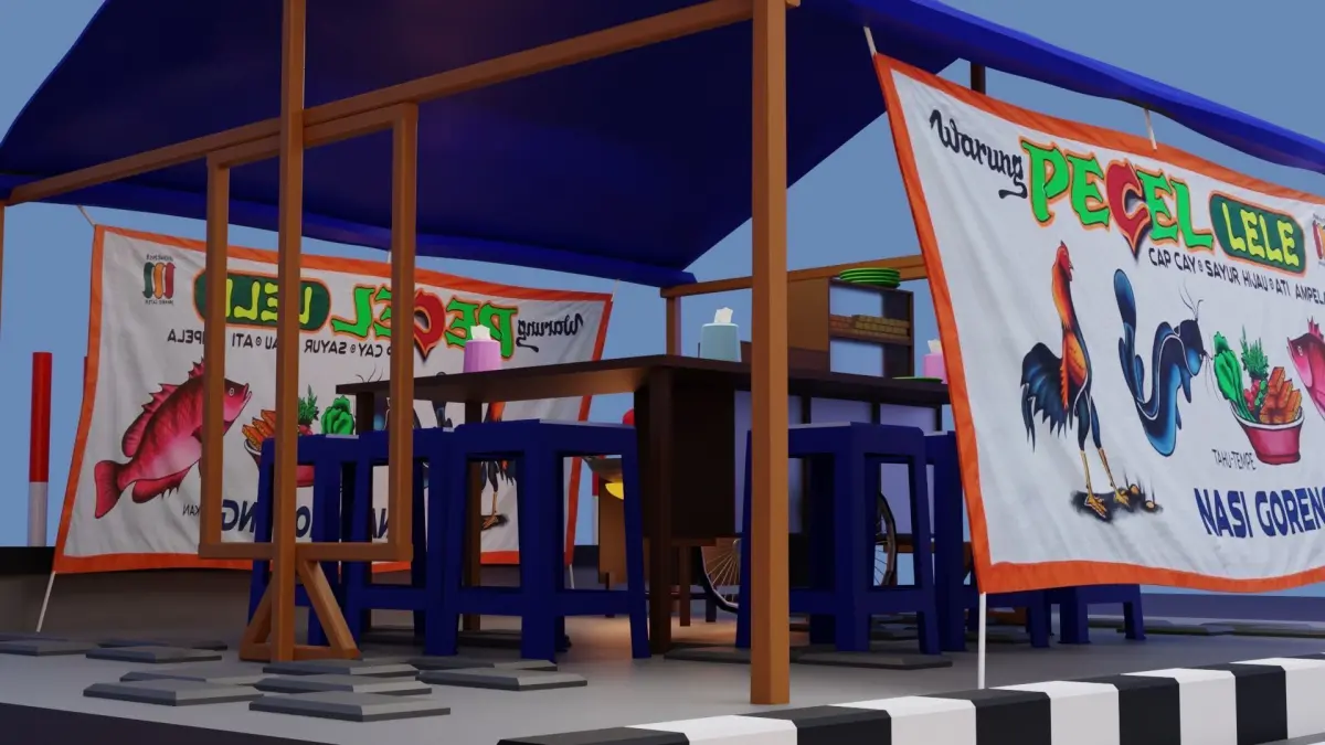 Warung Pecel Lele scene with lowpoly. So happy to create this model, cause that is the most iconic street food or five-foot food in Indonesia especially in Java.