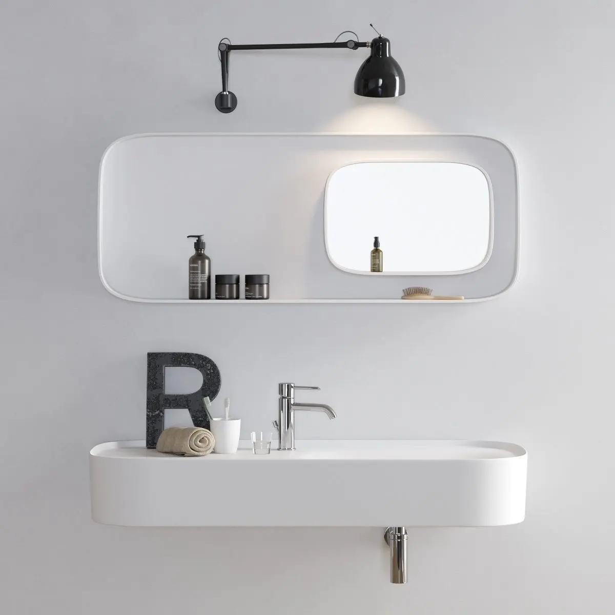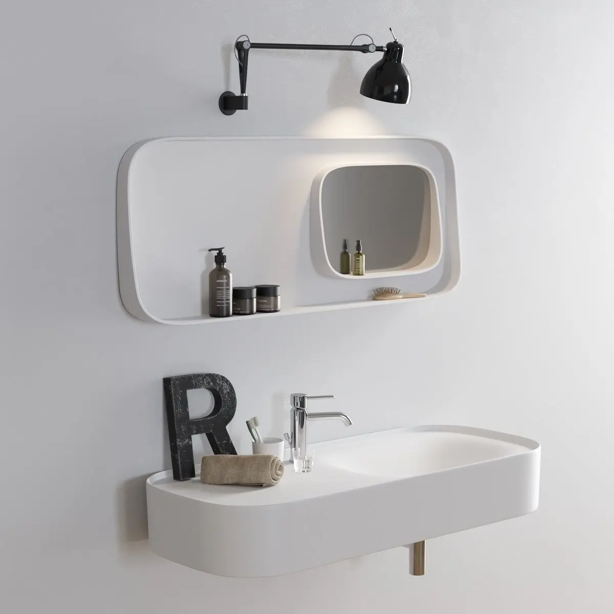 Collection - FonteName of product/article - FONTE | Washbasin with integrated countertopType - Wall-mounted Corian washbasin with integrated countertopMaterials - CorianDesigners - Monica GraffeoDesign Year - 2012