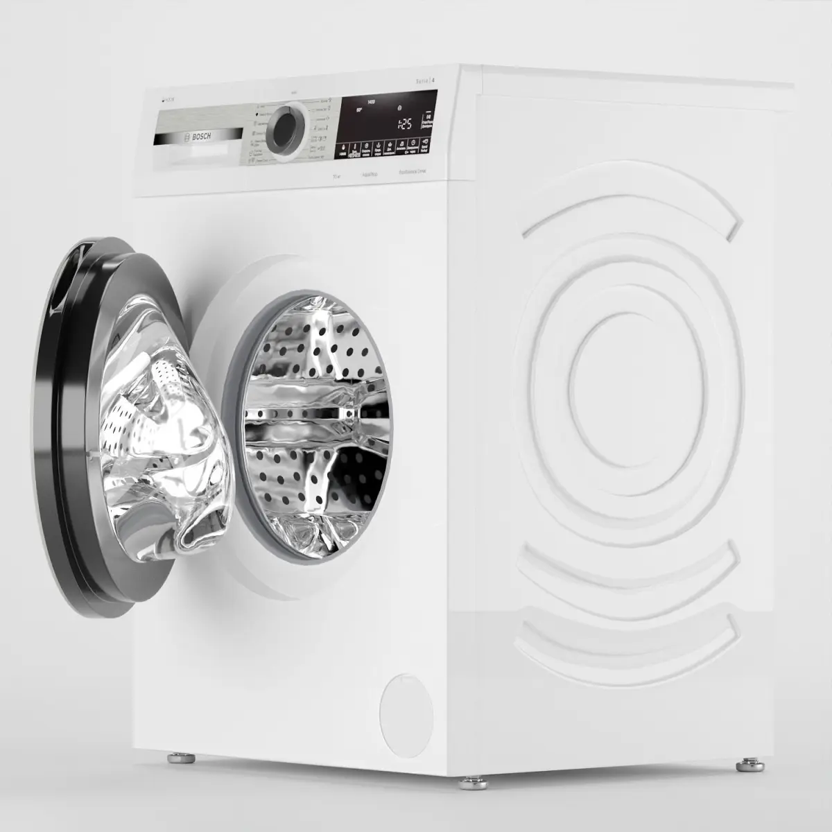 3D model of washing machine Bosch Serie 4Front loading up to 10 kg, 1400 rpm.White color. For convenience, the opening / closing of the door of the machine is configured.I detailed the back wall to a minimum to save resources.All materials and textures are signed.