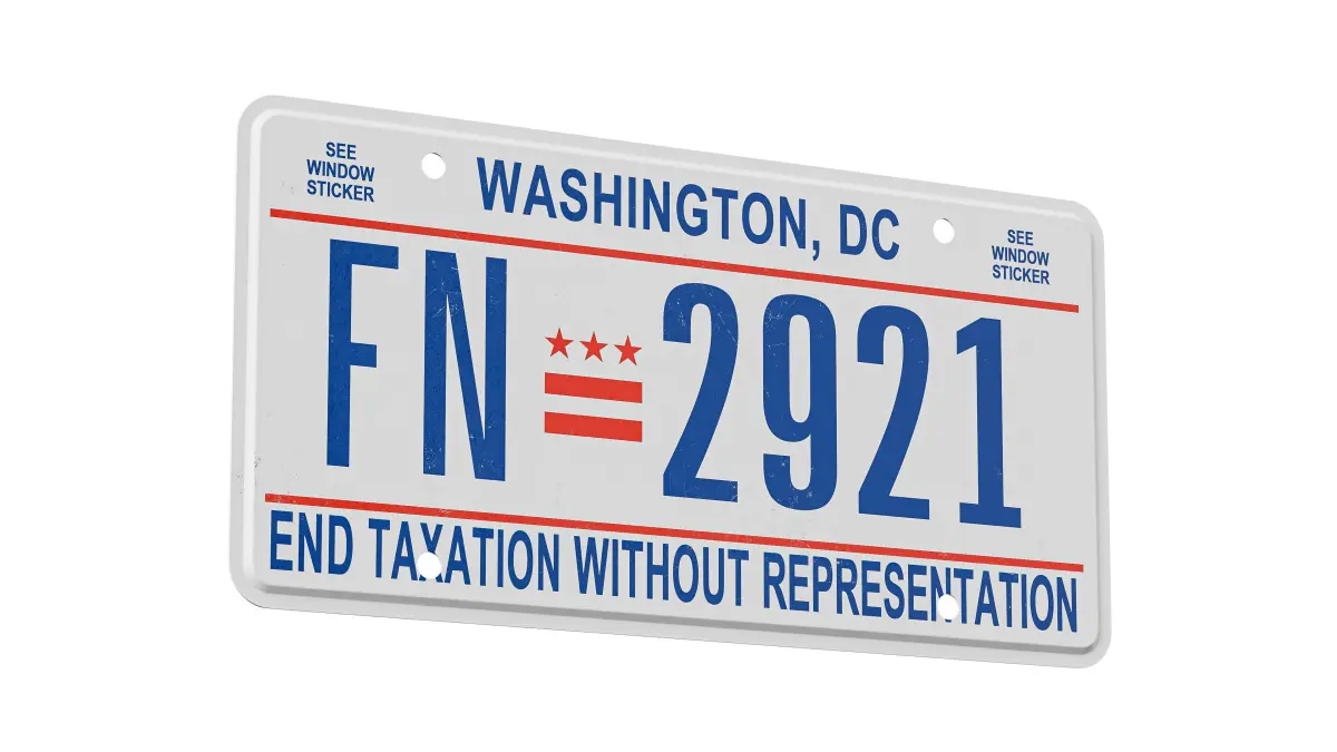 Photorealistic, high-quality and accurate 3D model of a Washington DC License Plate.