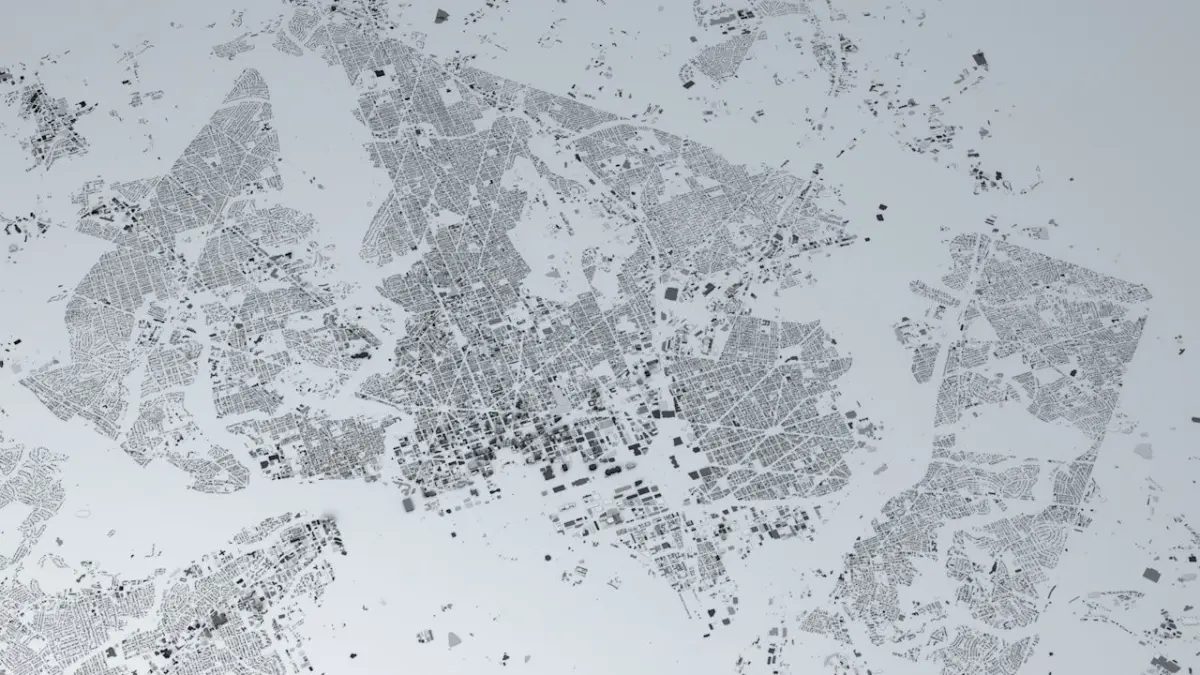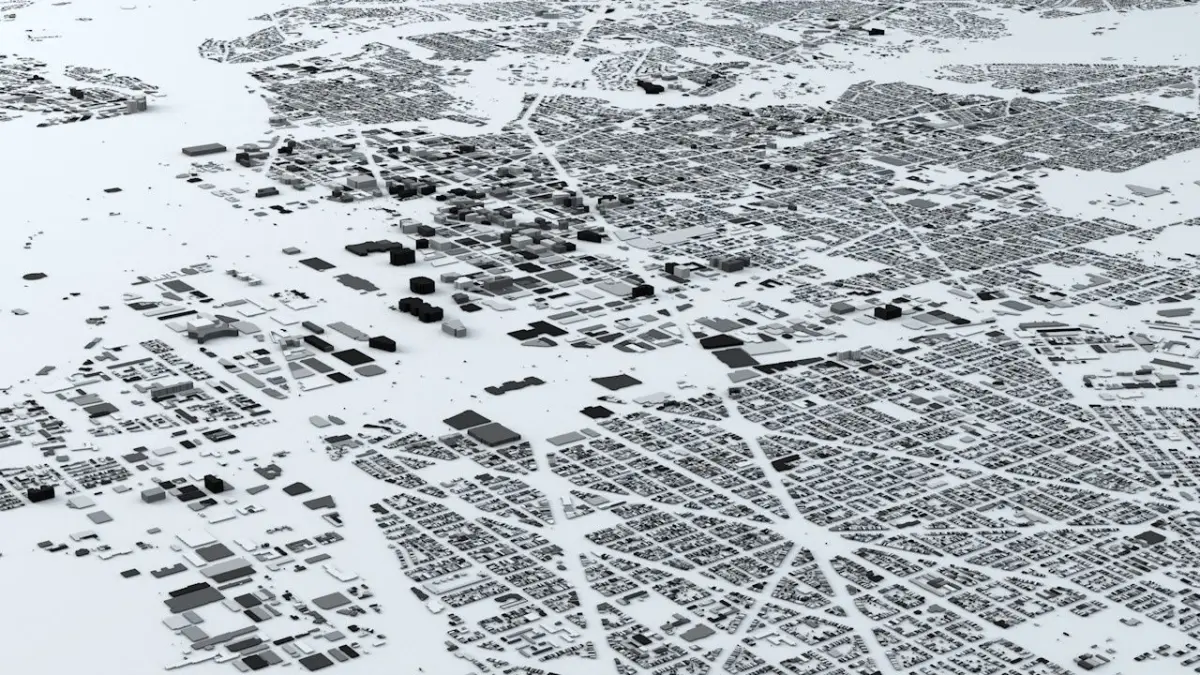 - the model is positioned on a flat surface (all buildings are on the “floor” - no elevation data included)