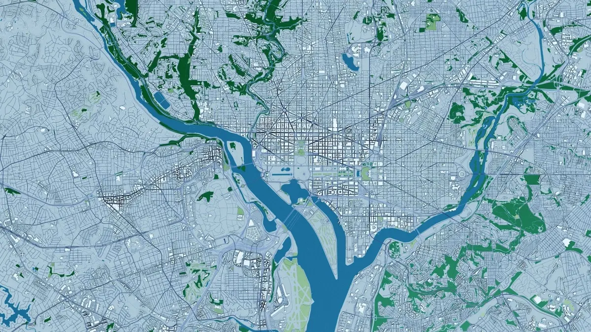 This is a 2019 OSM map version of a full Washington and surroundings, including terrain