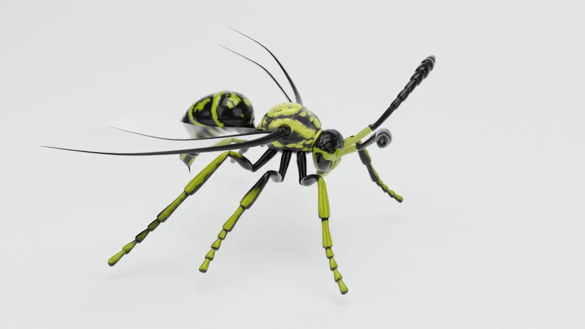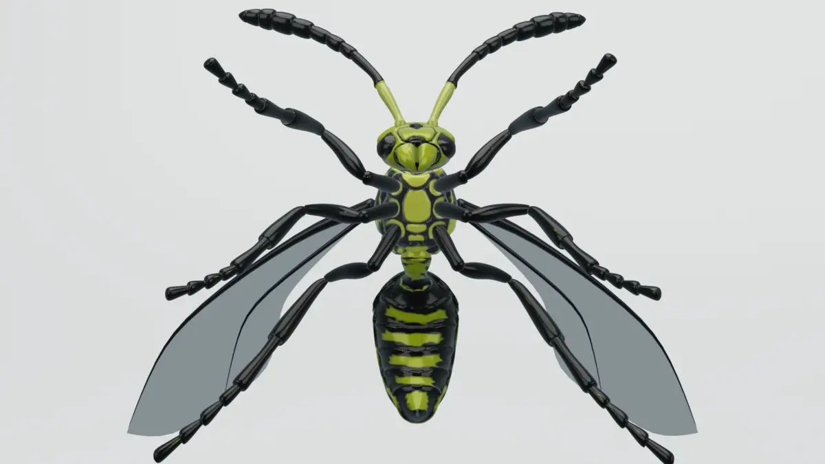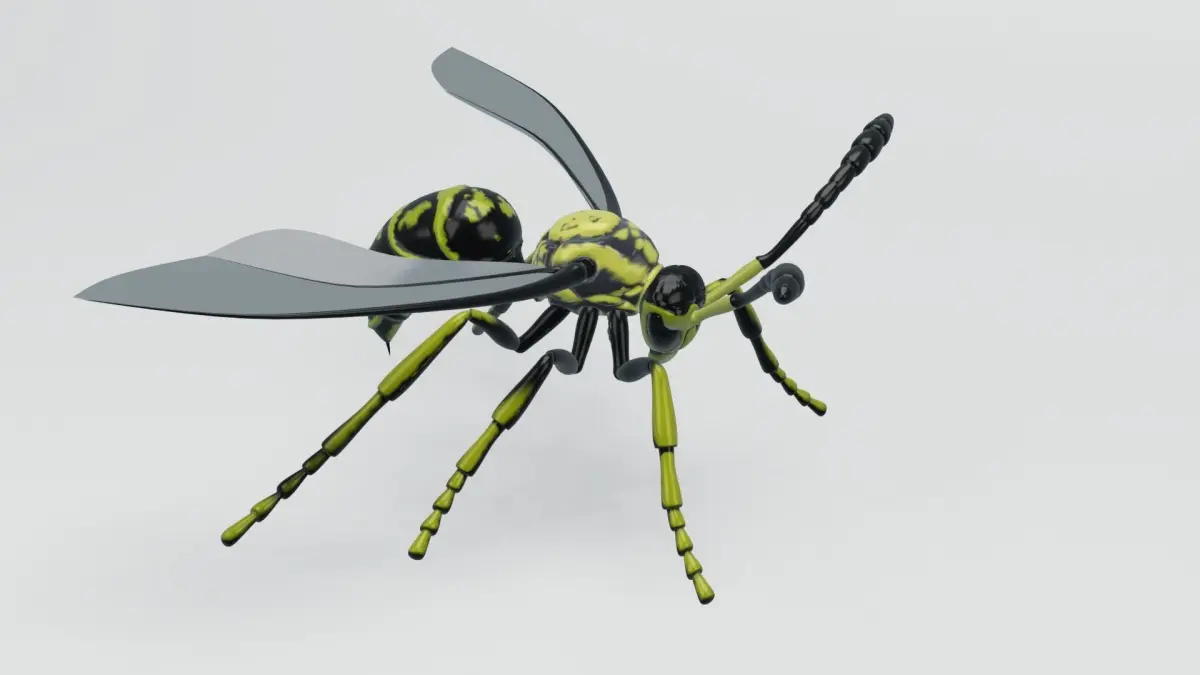 Wasp insect nature model made in the program Blender 3D render cycles and EEVEE, the model is made in 3 versions,1 - low poly blank2- average drawing,3 - highly detailed with textures.The model can fit any task because it can be made low-poly with the help of the disc located in the files. The textures were drawn in the 3D blender program and they are also used with the help of nodes for normals.