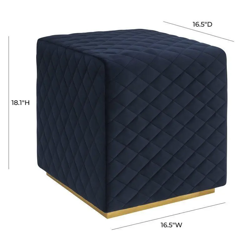 - This Rogge Cube Ottoman embodies a combination of timeless simplicity and luxury. These unique patterned velvet pair beautifully with the solid brass base, adding an element of glamour in just the right dose.