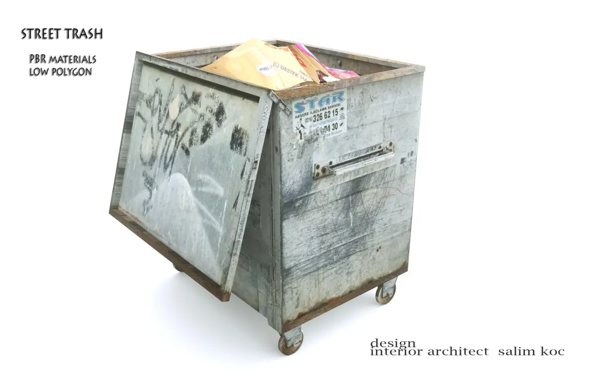 metal old trash can.......................realistic image in games and designs..........................thank you.........................desıgner salim koç