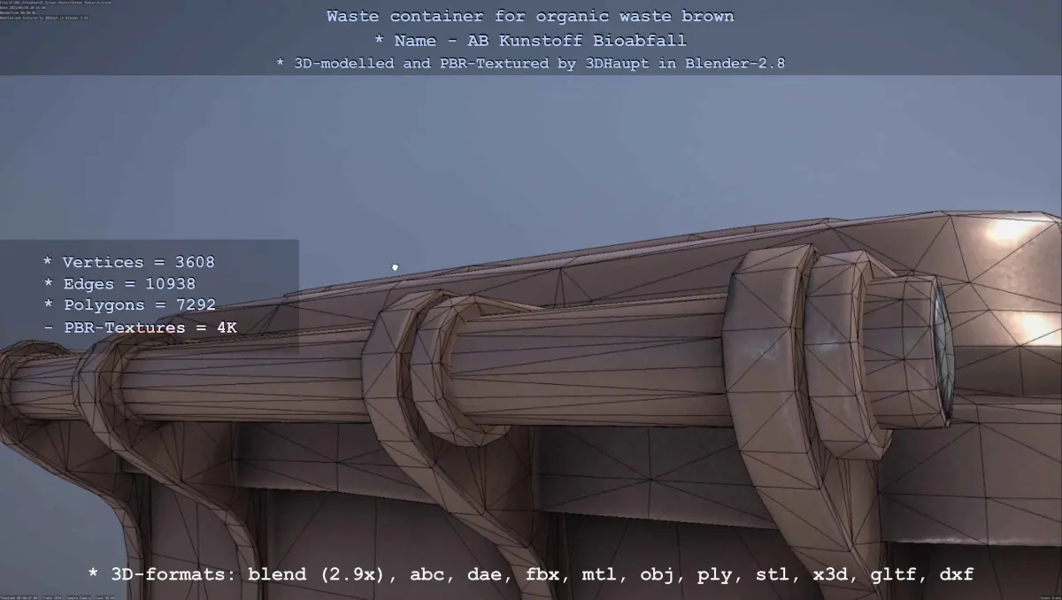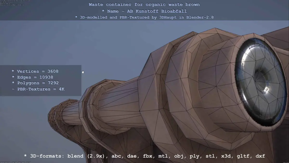 BLEND (Blender, filesize: 409 MB), OBJ (OBJ, filesize: 374 MB), FBX (Autodesk FBX, filesize: 374 MB), GLTF (glTF, filesize: 374 MB), ABC (Alembic, filesize: 374 MB), DAE (Collada, filesize: 374 MB), DXF (DXF, filesize: 374 MB), STL (Stereolithography, filesize: 374 MB)