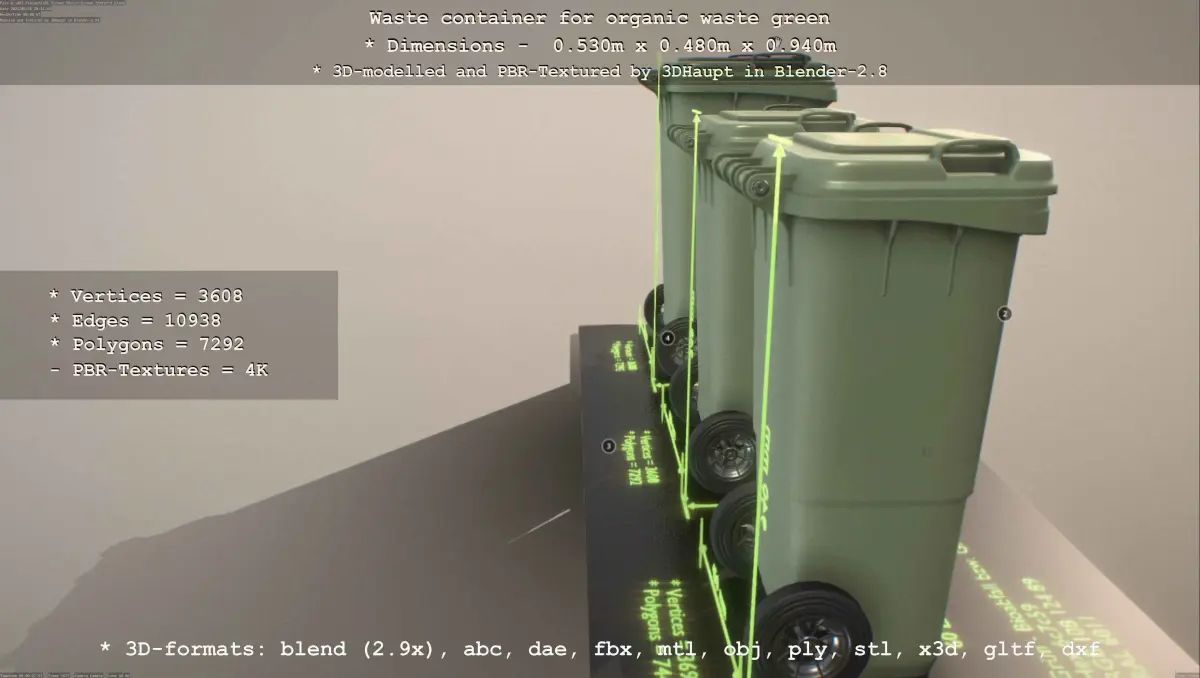 BLEND (Blender, filesize: 414 MB), OBJ (OBJ, filesize: 379 MB), FBX (Autodesk FBX, filesize: 379 MB), GLTF (glTF, filesize: 379 MB), ABC (Alembic, filesize: 379 MB), DAE (Collada, filesize: 379 MB), DXF (DXF, filesize: 379 MB), STL (Stereolithography, filesize: 379 MB)