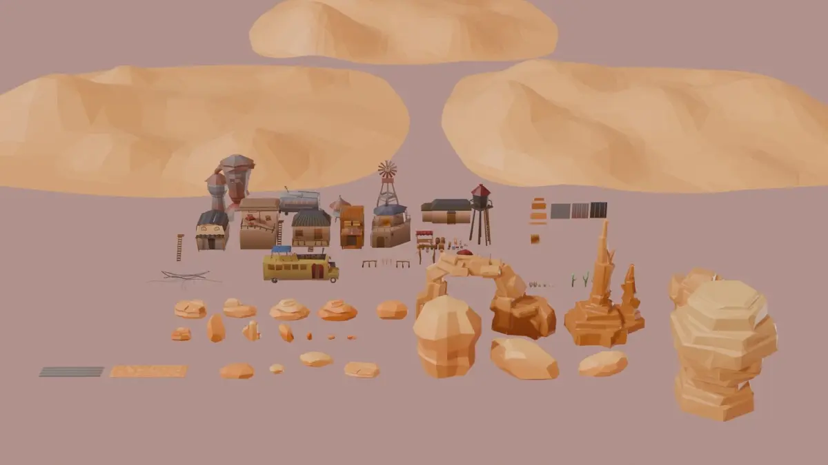 This collection have the perfect props to recreate a Wasteland, desert scenario. This collection only use 3 Textures for all the props.