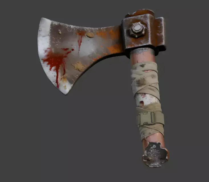 Tagshatchetaxepost-apocalypticrustedsurvivalweaponmeleewastelandimprovisedtacticalbloodyindustrialscavengedpipemetalsteel3d assetsurvivalistcombathorror
