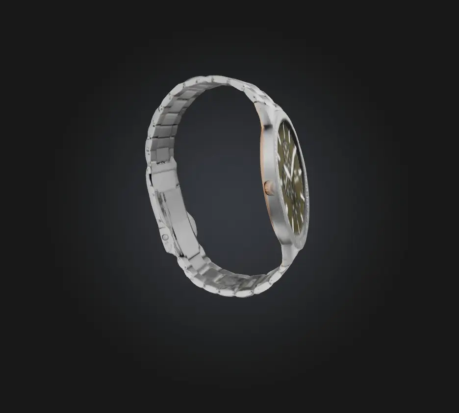 Modelo 3D de alta calidad de un reloj de pulsera elegante, perfecto para animaciones, juegos y simulaciones. Formatos de archivo disponibles: FBX, OBJ, STL, GLB, USDZ, BLEND.