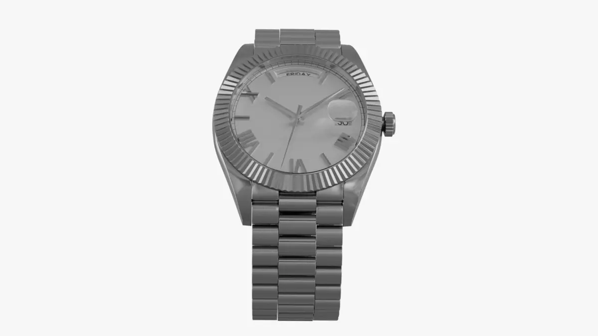 About the Model:This high-quality, realistic model of a President-style wristwatch is perfect for close-up shots, animations, or product visualization.PBR materials are included in a separate folder for ease of use.A second folder with dial textures is also included for those not using Blender's Cycles or Eevee render engines.The dial texture is separated from the PBR materials, allowing for quick and easy customization of the watch branding.UDIM textures (3 tiles) provide excellent detail for high-resolution renders.The day and date can be adjusted by selecting the corresponding objects and rotating them.